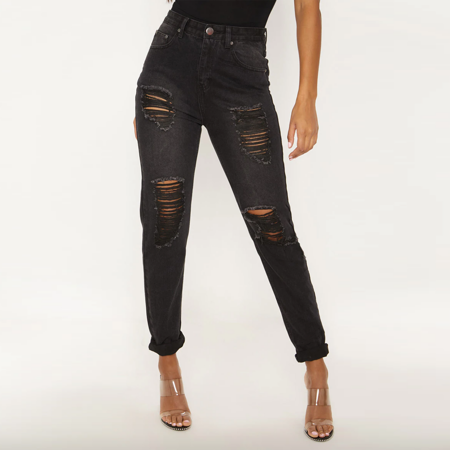 nwt prettylittlething extreme wash ripped turn up mom jeans - size 4