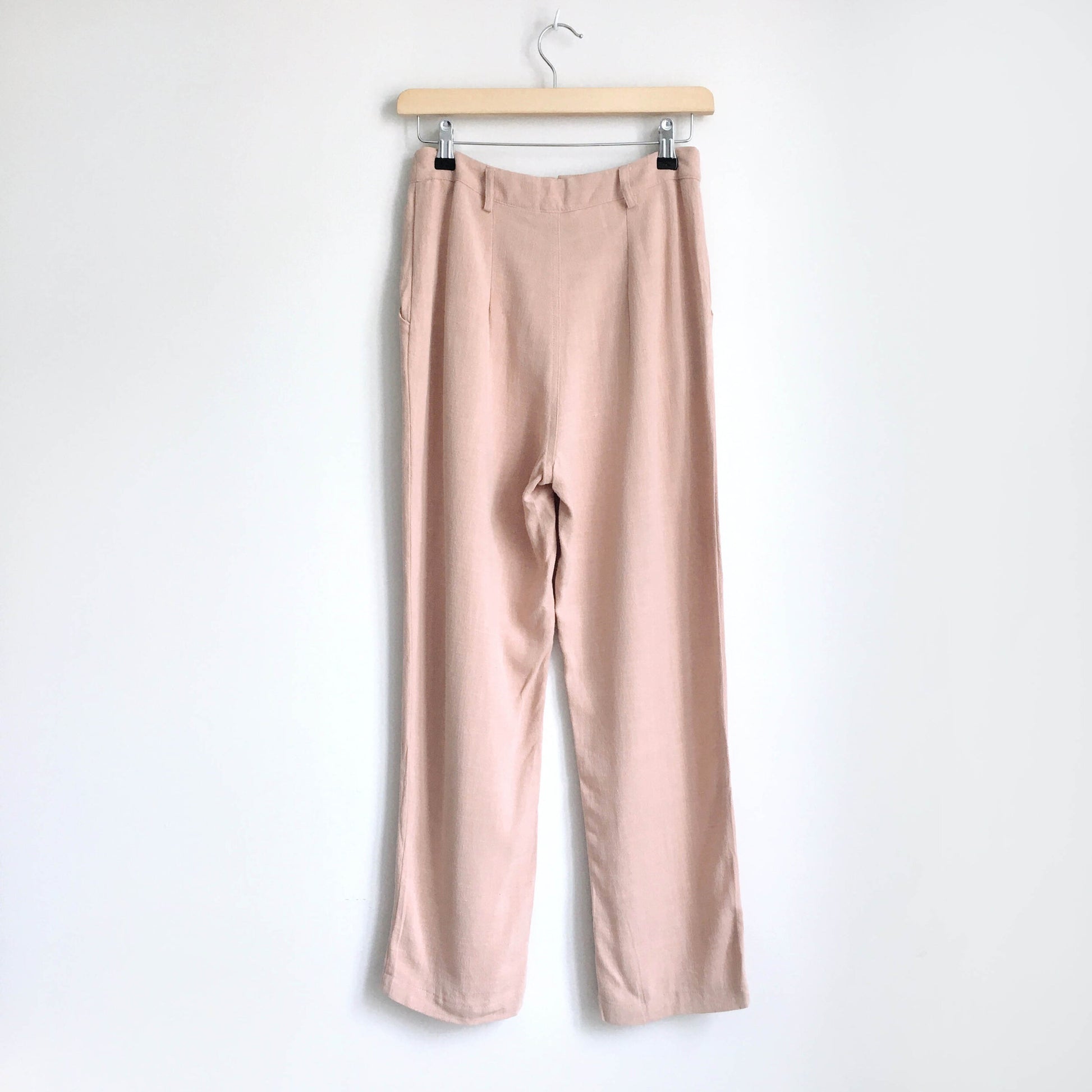 Item Description: These light peach linen-blend trouser from Sans Souci feature a high rise and button fly. 70% rayon 30% linen