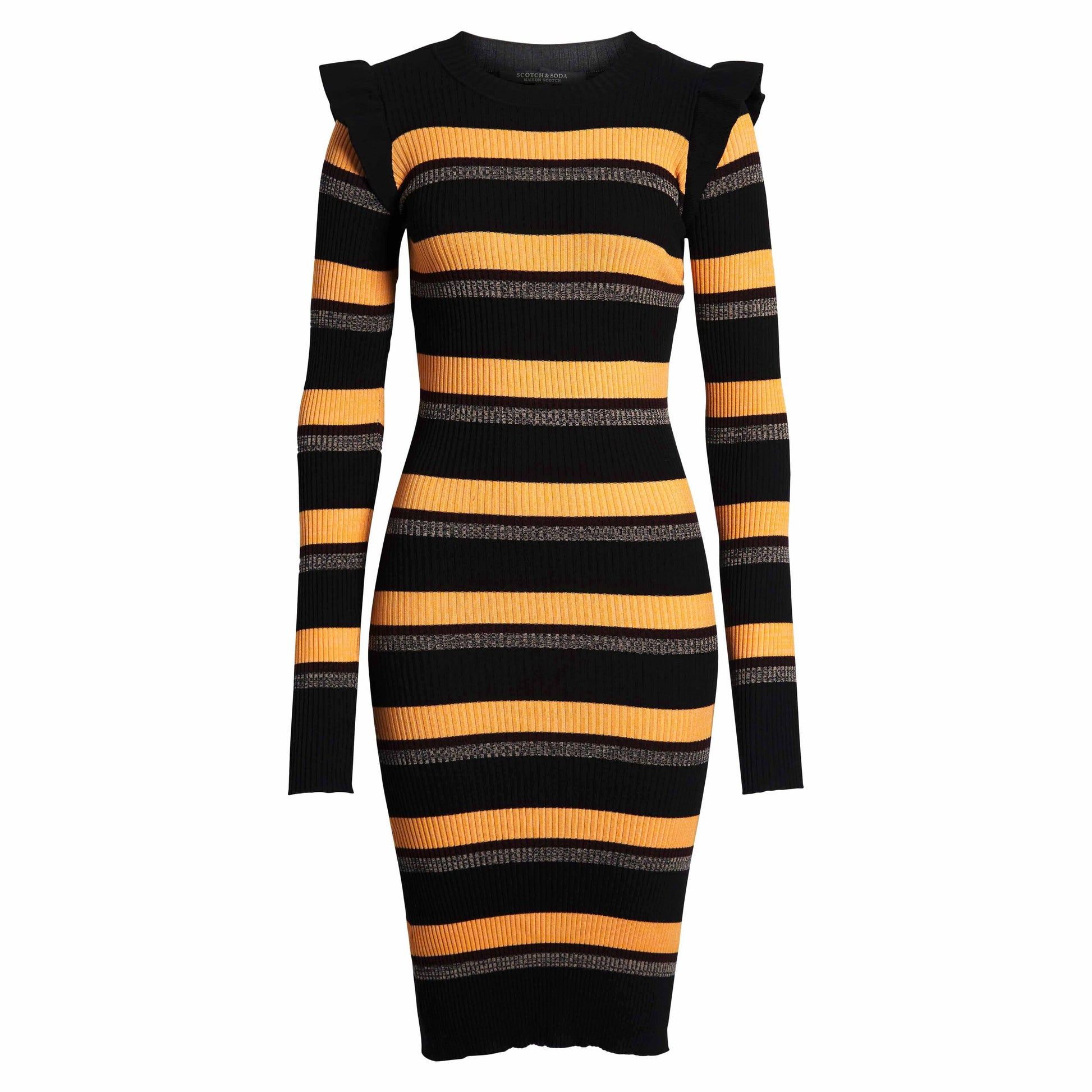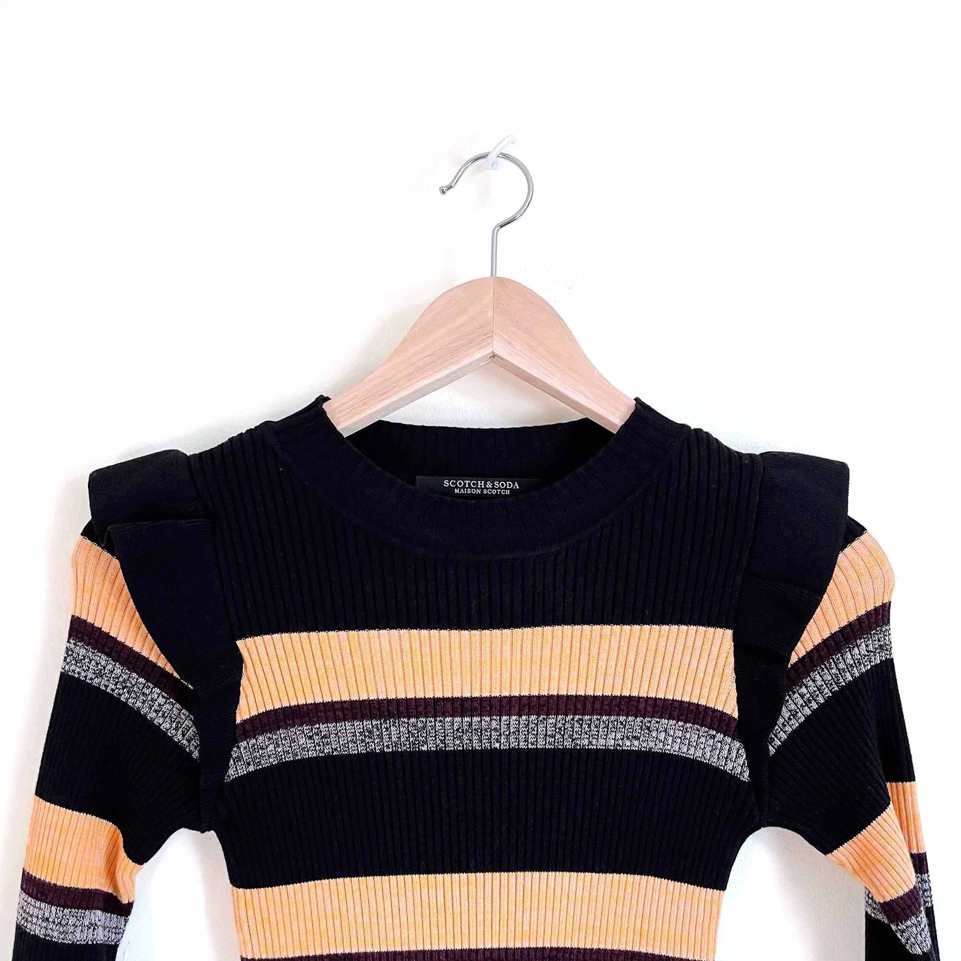 nwt scotch & soda rib long sleeve ruffle shoulder dress - size Small