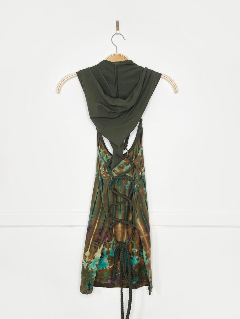 nwt the fairies pajamas tie dye lace up ring back elf hood mini dress