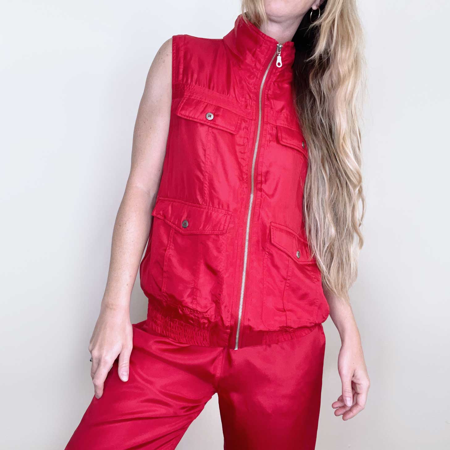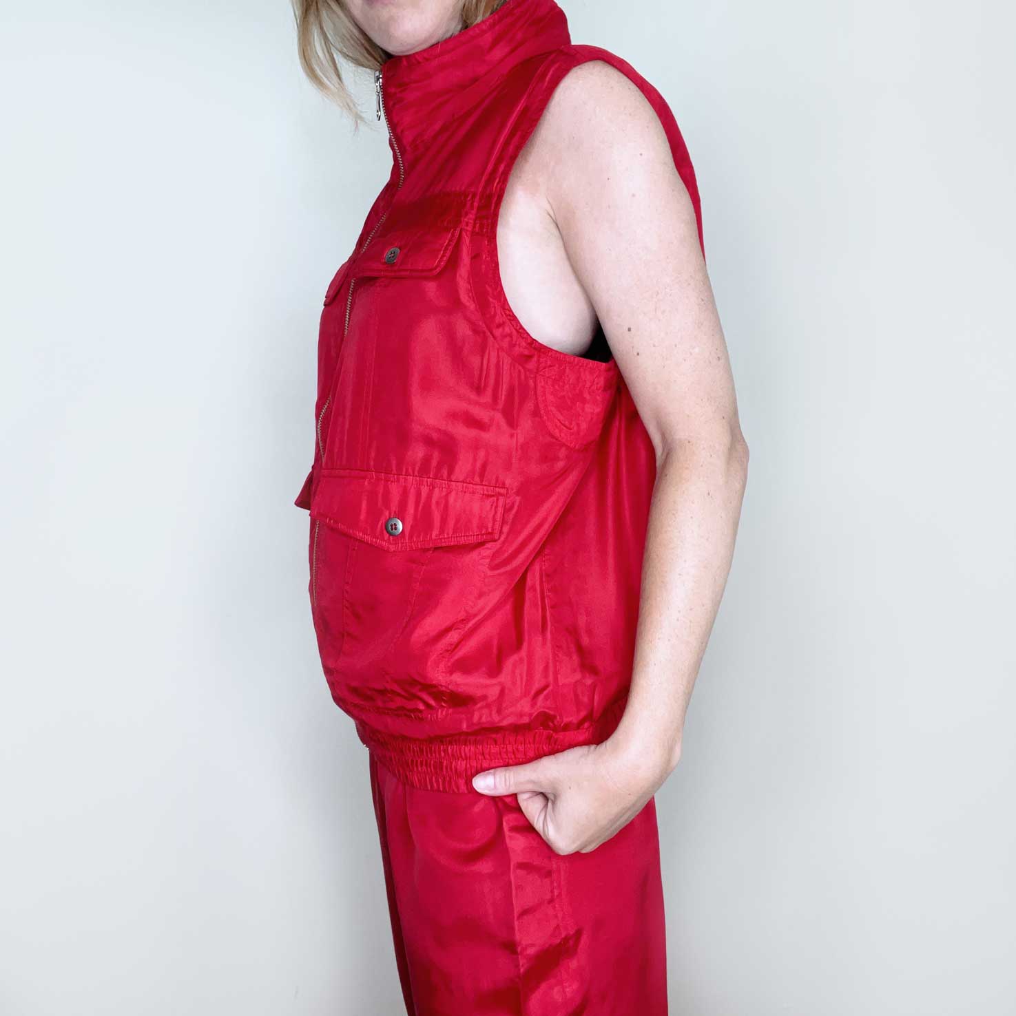 nwt vintage deadstock evr red silk top vest and track pant set - size medium