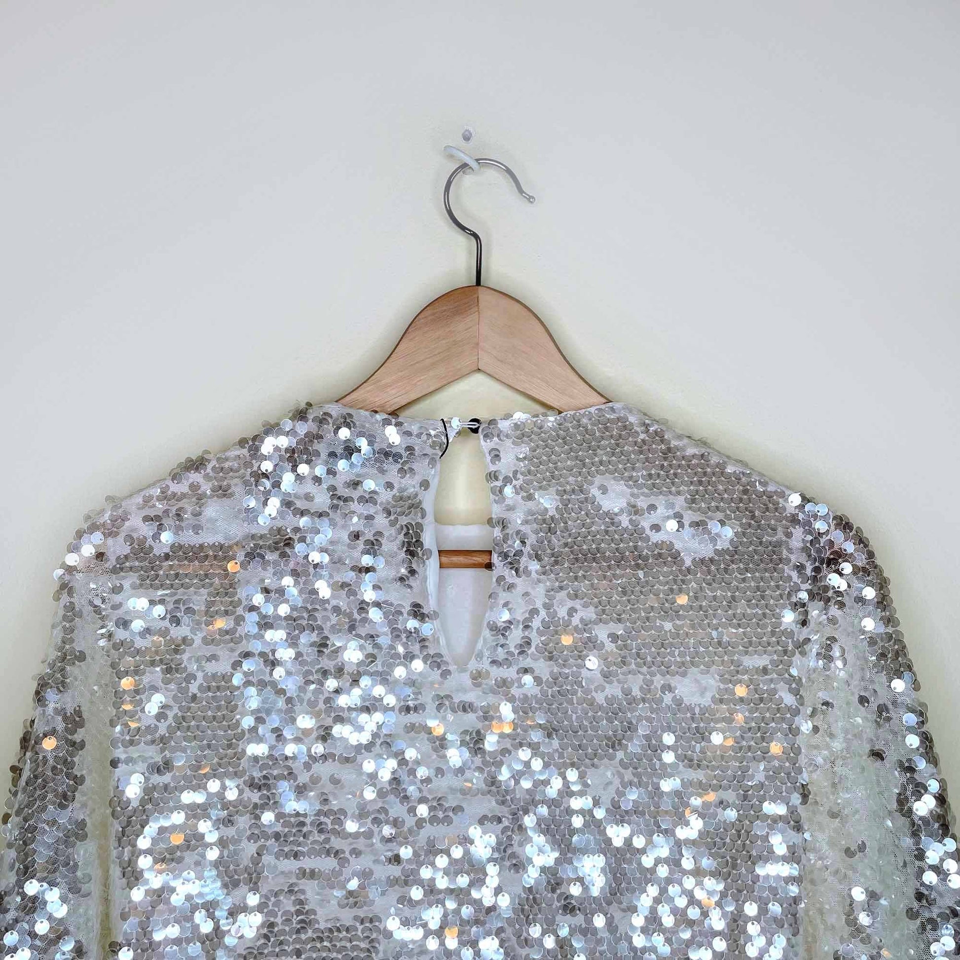 nwt zara white sequin oversized long sleeve blouse - size xs