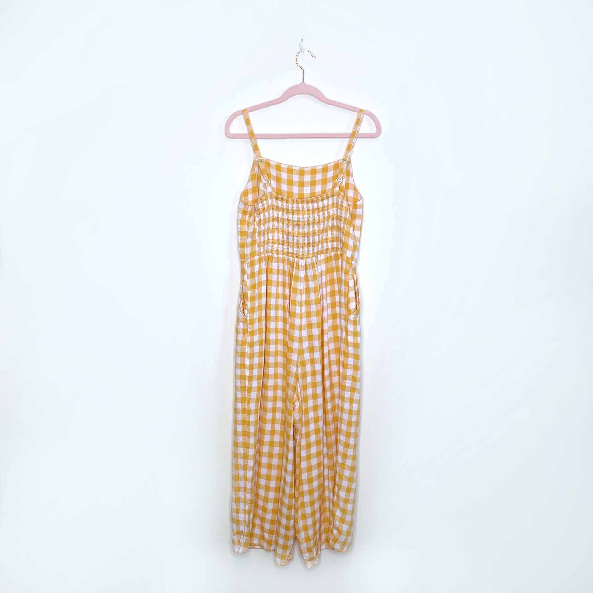 old navy yellow gingham plaid linen-blend jumpsuit - size medium