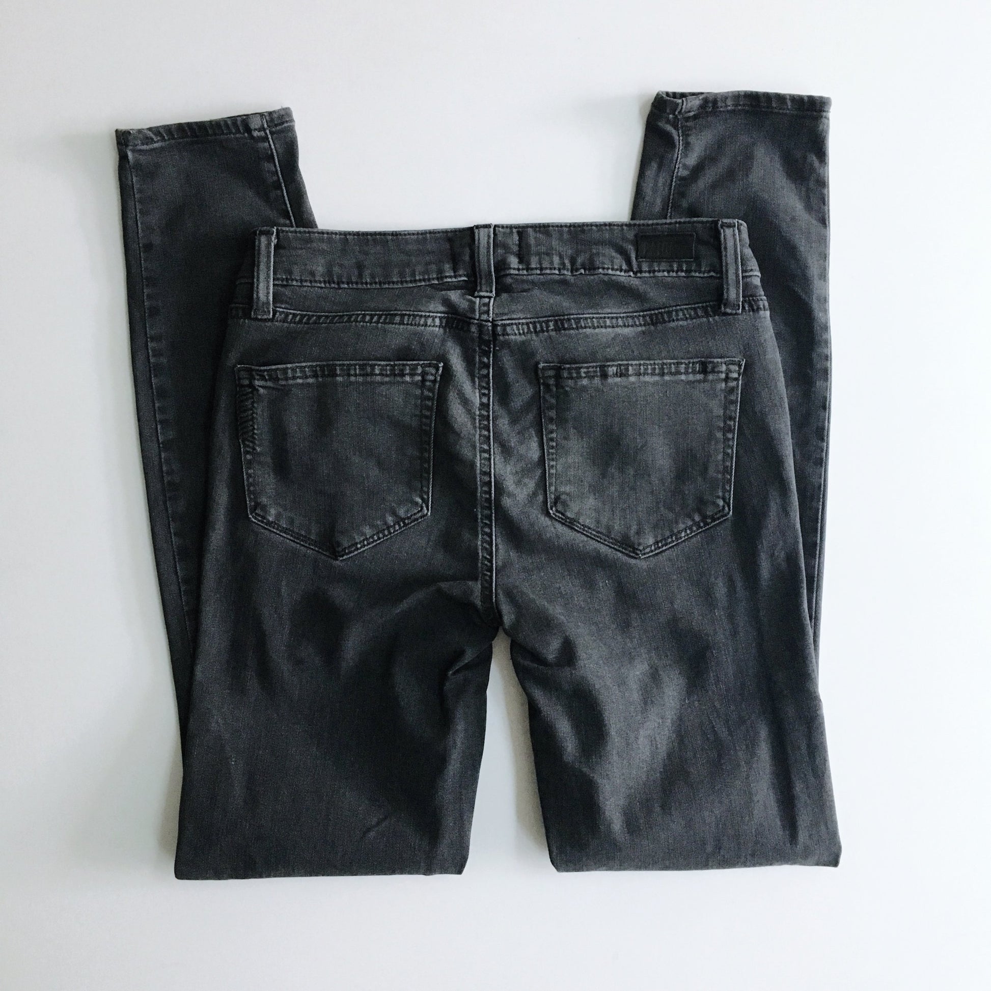 - Skinny leg - Ankle length - Smoke Grey wash - 9" medium rise - 30" inseam - Belt loops at waistband - Zip fly with button closure - Five pockets