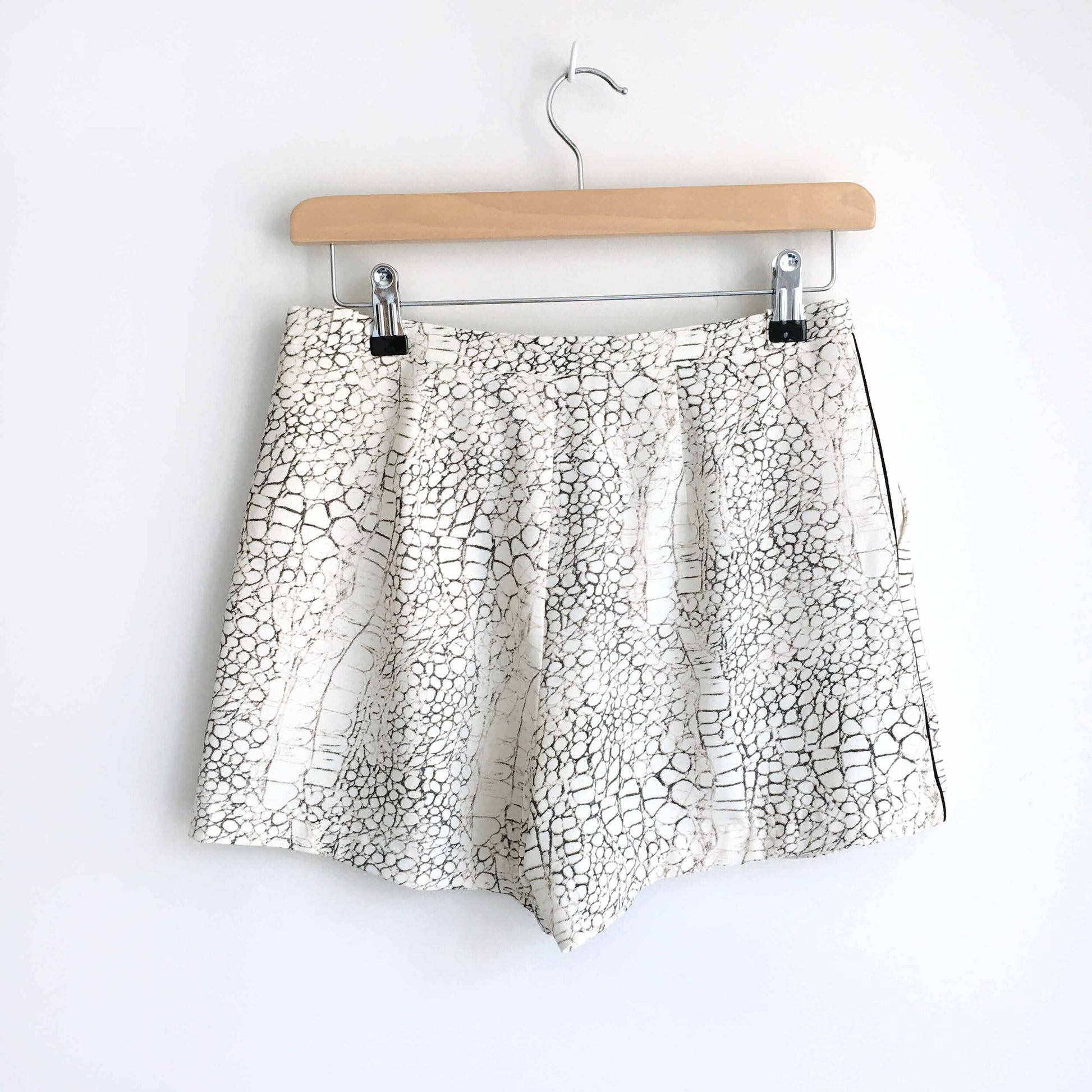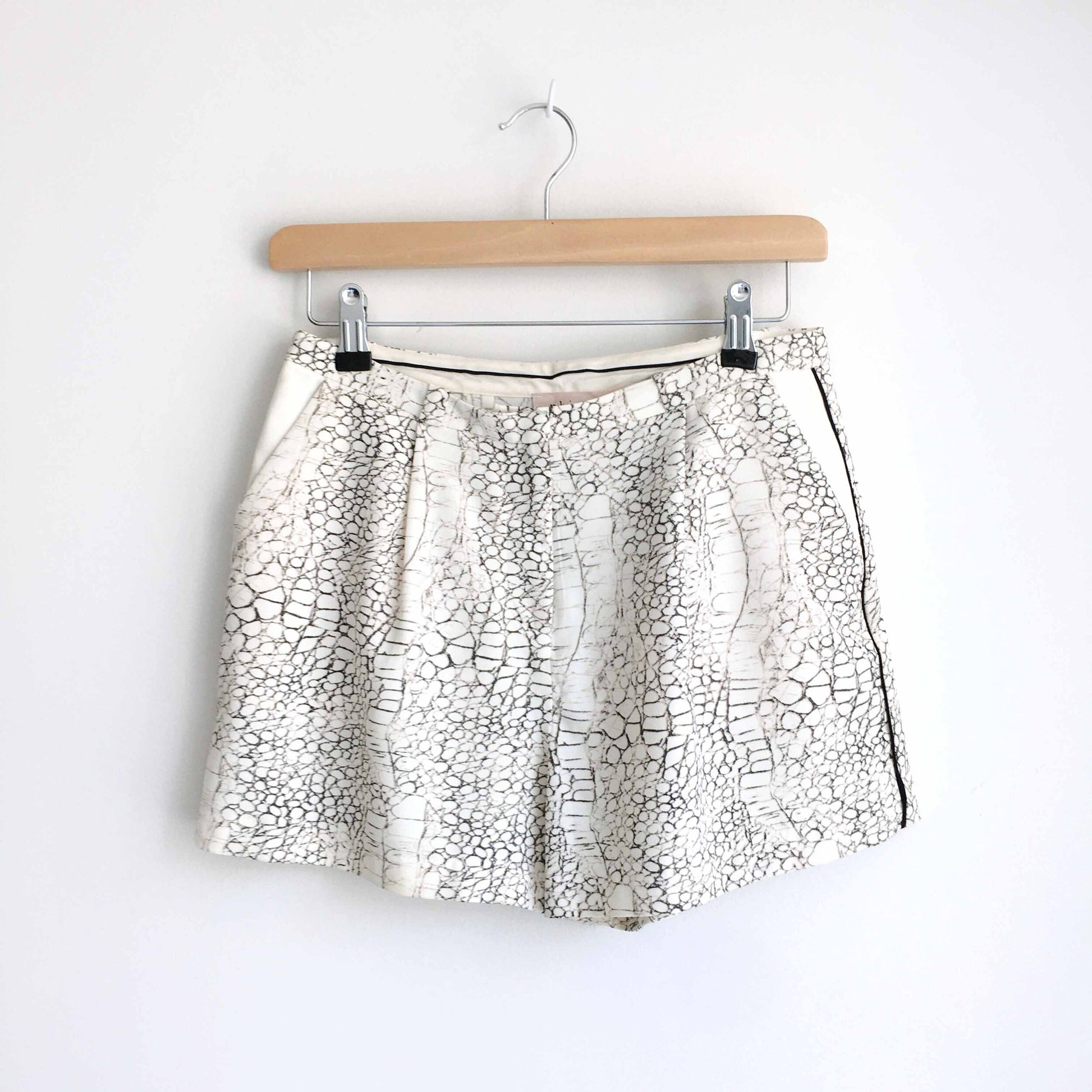 Item Description: These cream shorts from Philosophy are perfect to dress up or down with their snakeskin print, tuxedo stripe, side pockets, front pleats, and even belt loops for your mini belt. 100% polyester