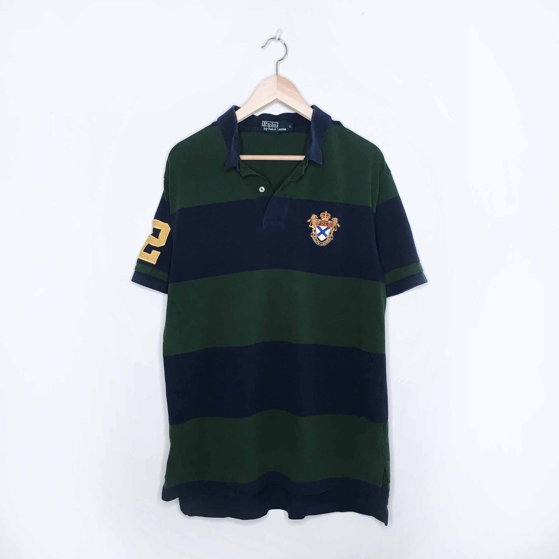 Polo Ralph Lauren crest rugby green stripe shirt - size Large