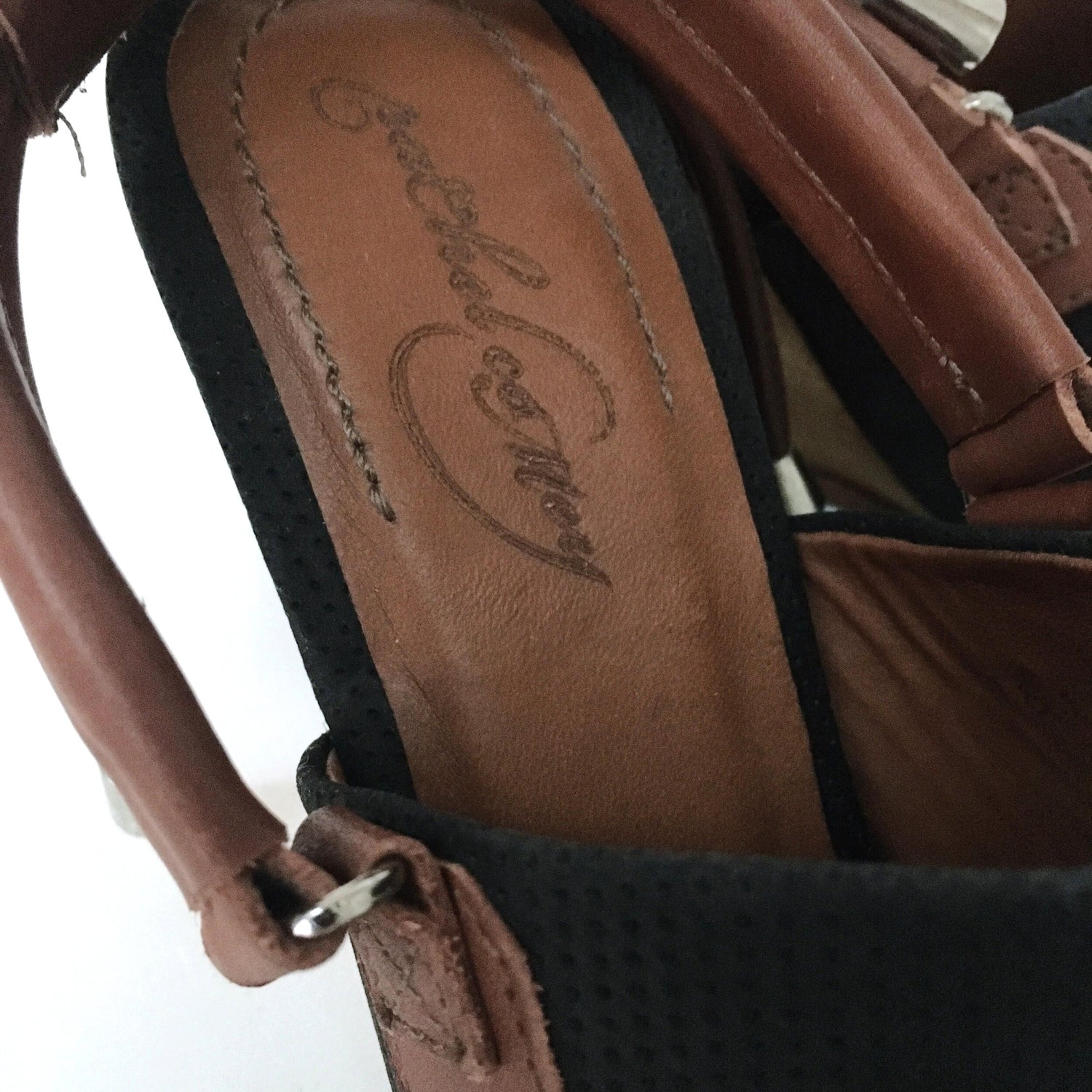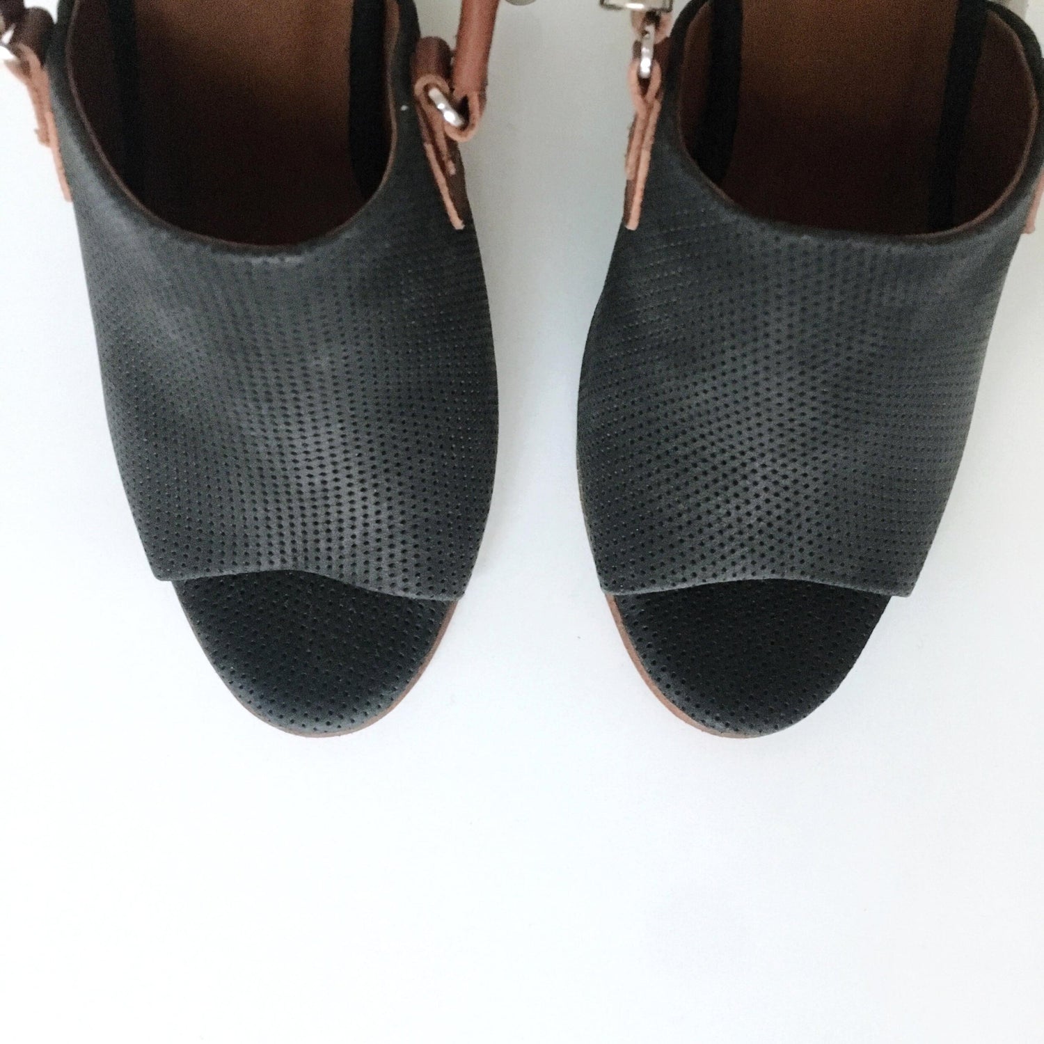 Item Description: Another classic Rachel Comey style, re-mastered in a beautiful grey perforated suede. A luggage brown ankle strap with dark brown suede tassels balance the full leather upper with the rounded wooden wedge. Leather sole with a rubber heel tap, fully lined in leather with a cushioned foot bed. 3.5" total heel height. Ethically made in Peru. As seen on 90210.