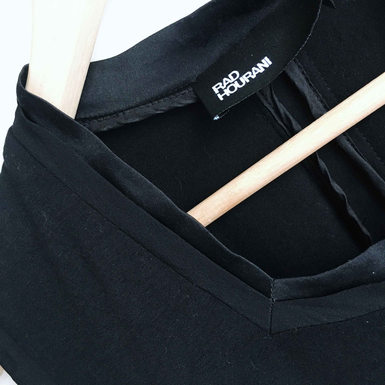 Item Description: Rad Hourani knocked it out of the park with this easy wearin’ unisex jersey dress. Features square neckline and arm holes, along with silk satin and alternating silk chiffon piping and trim.