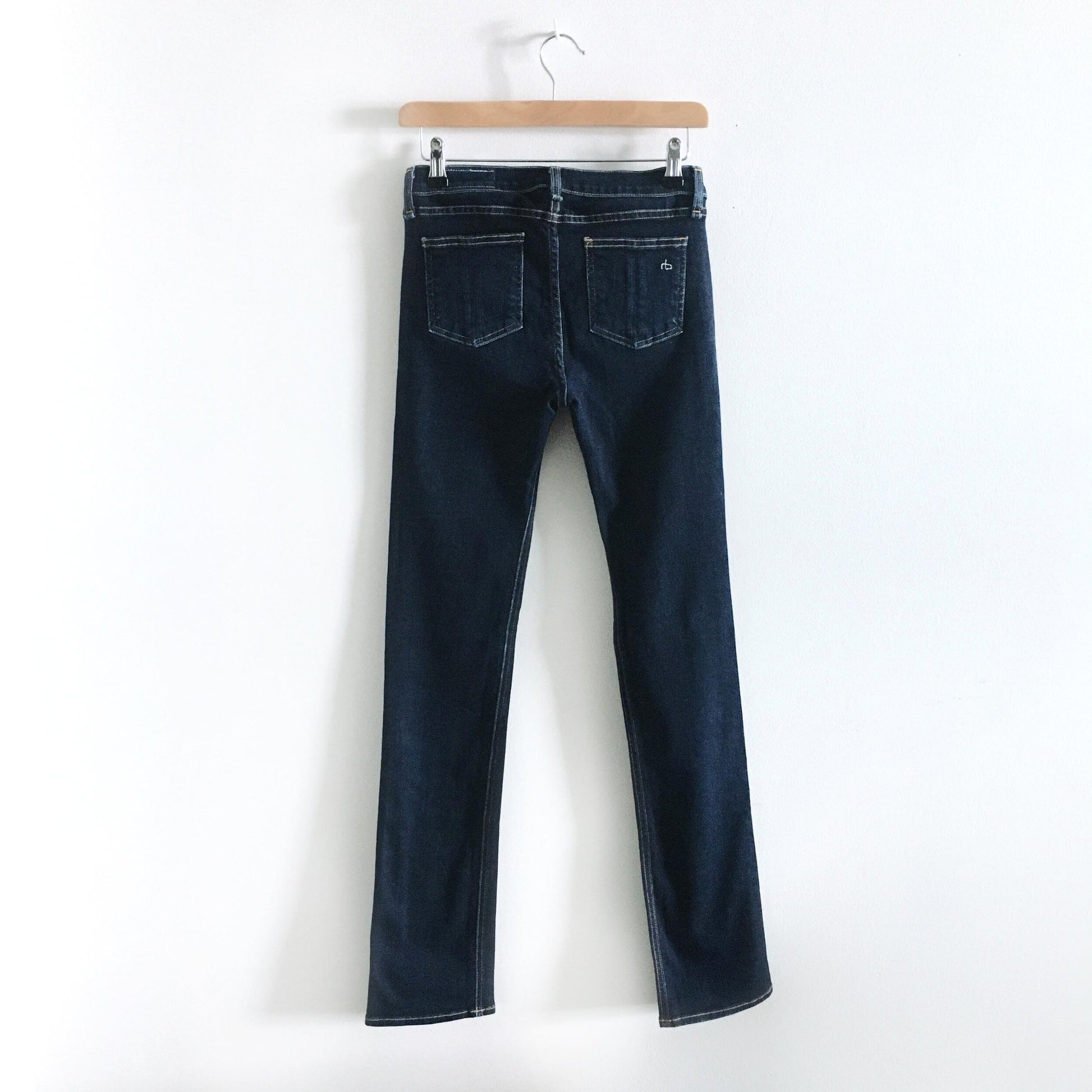Item Description: A classic fit, these mid-rise cigarette leg jeans from rag & bone are set in a dark hue, the heritage wash. A straight leg gives a flattering silhouette and room to move with a bit of stretch. 98% cotton, 2% polyurethane