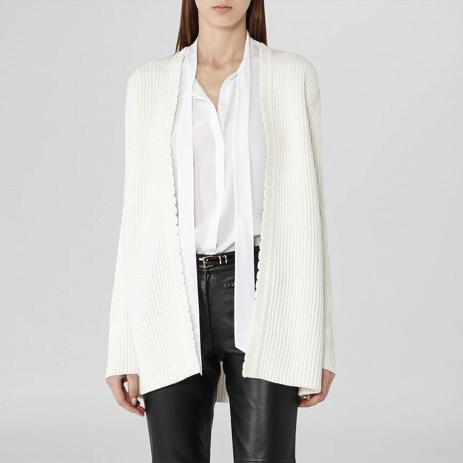 reiss sasha scallop edge ribbed cardigan with cashmere - size medium