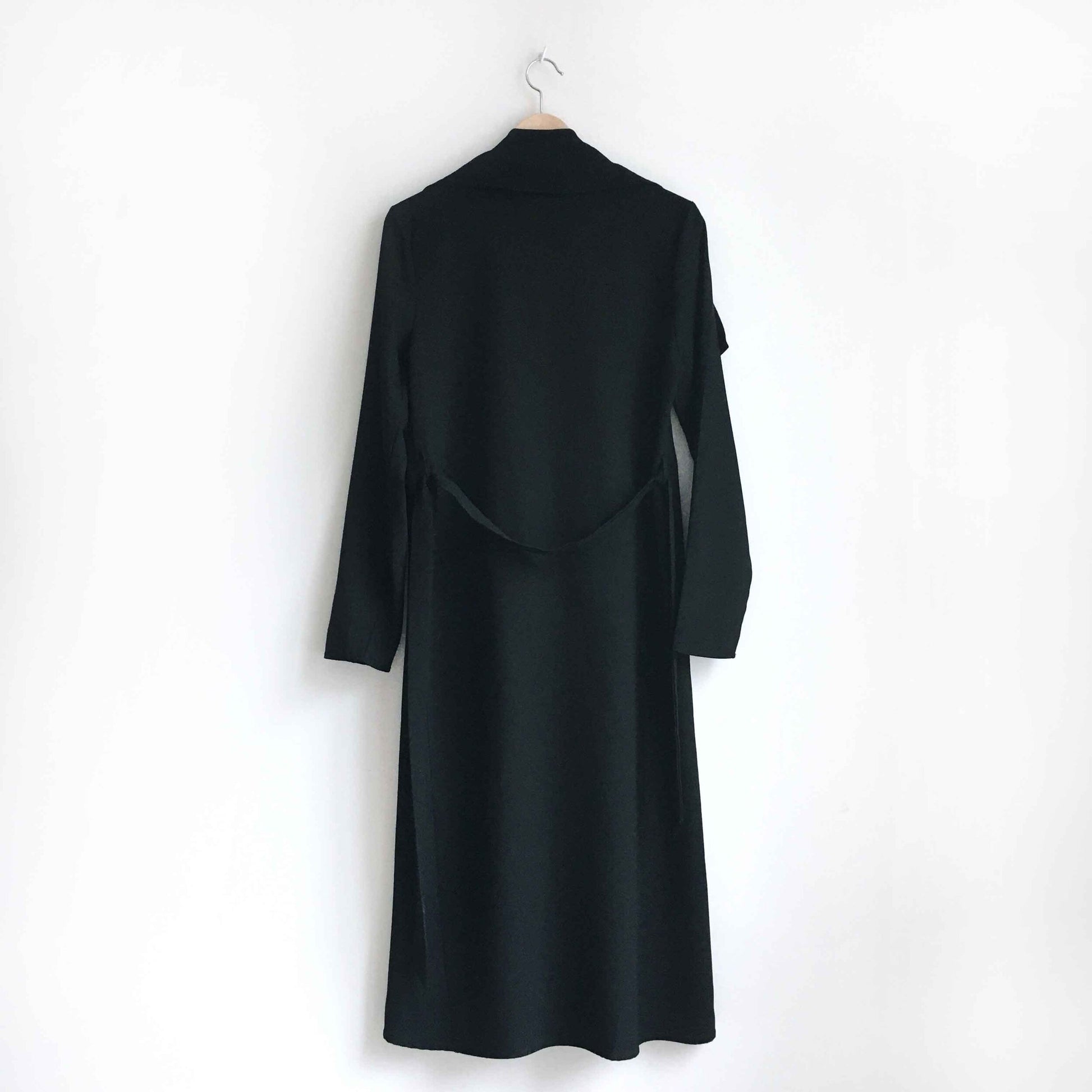 Item Description: A classic cut with an elegant drape, this duster jacket from the Revamped Premium Collection features a waterfall collar and self tie belt in a stretchy polyester blend. 97% polyester 3% spandex