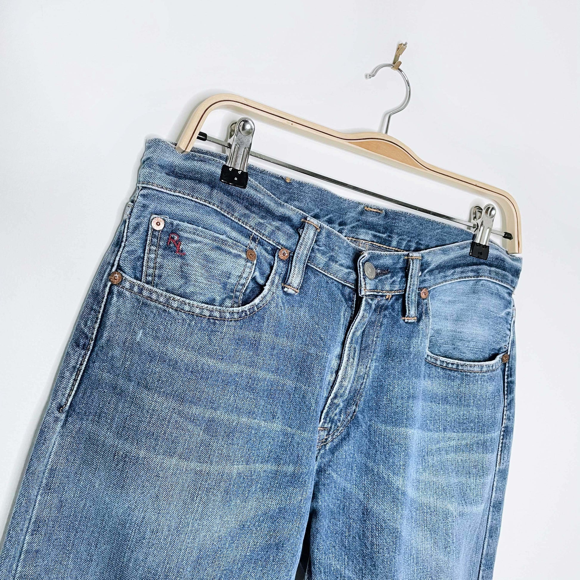 Measurements: 16" across waist 10" rise 33" inseam