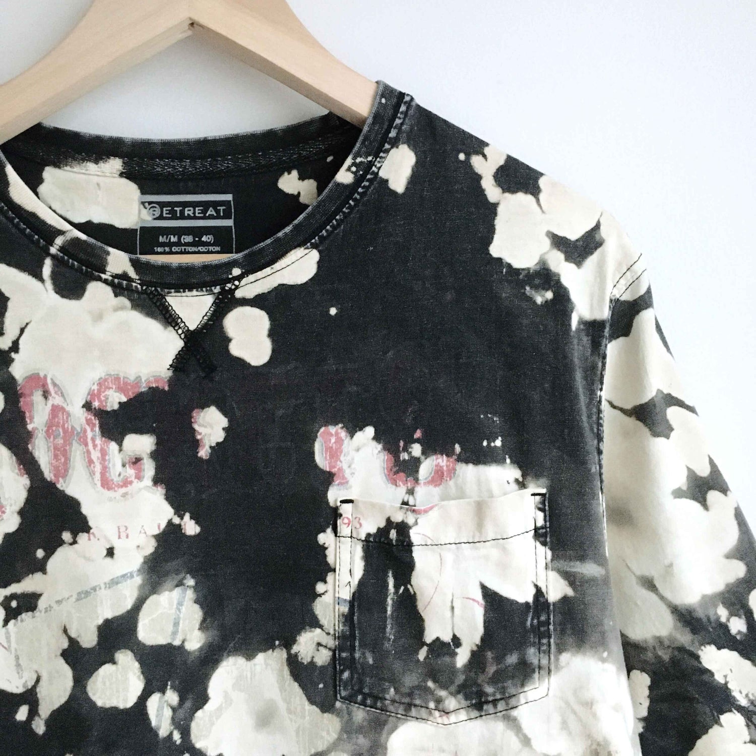 Item Description: This graphic pocket tee got a whole new take on the world with this ‘cow print’ bleach tie dye. 100% cotton