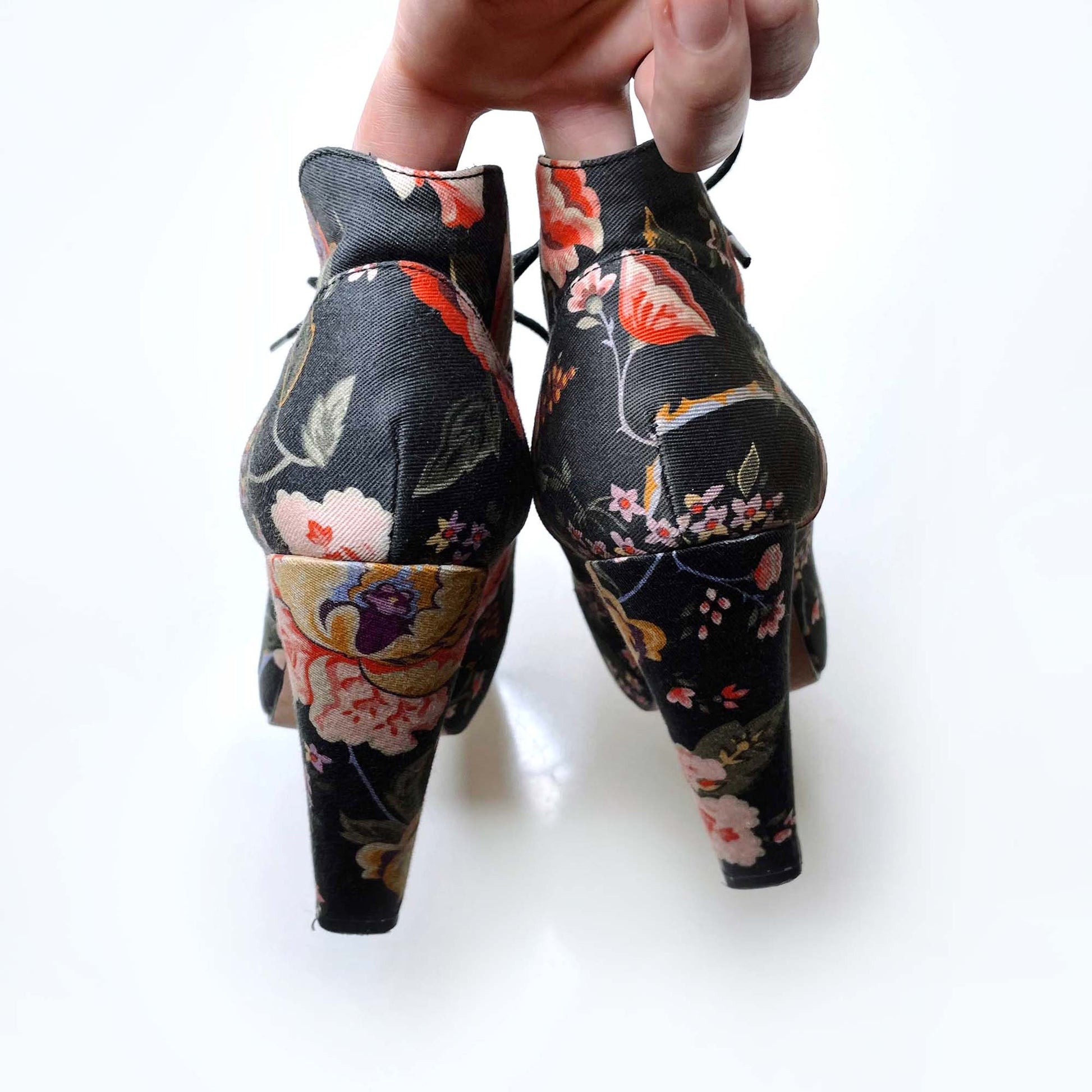 Item Description: These totally eclectic floral shoes from the Rodarte collab with Opening Ceremony feature a cut out on squared toes with a collared heel and lace-up closure.