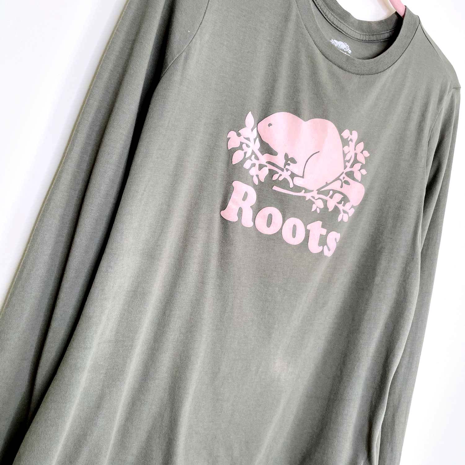 roots 2018 flocked cooper beaver long sleeve tee - size small