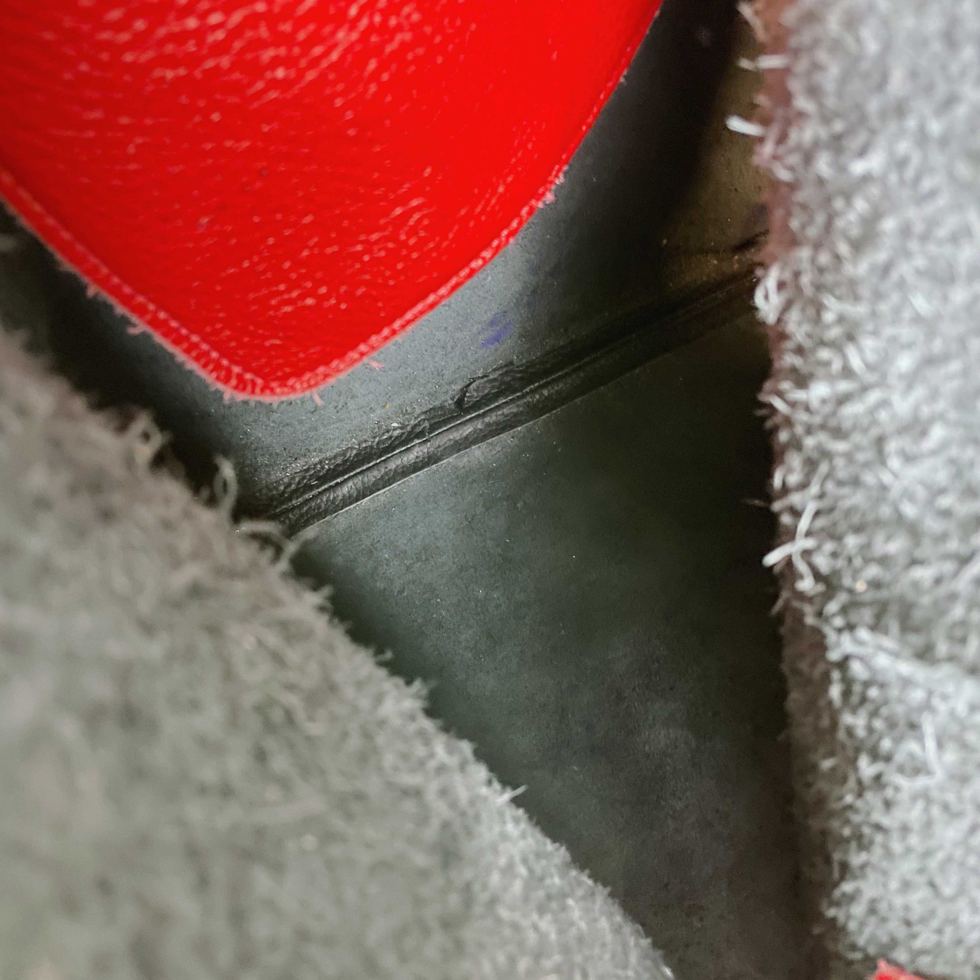 Item description: This handy shopping tote from Roots is set in a pebbled leather with red handles - perfect size to stash unexpected purchases or carrying your laptop around.
