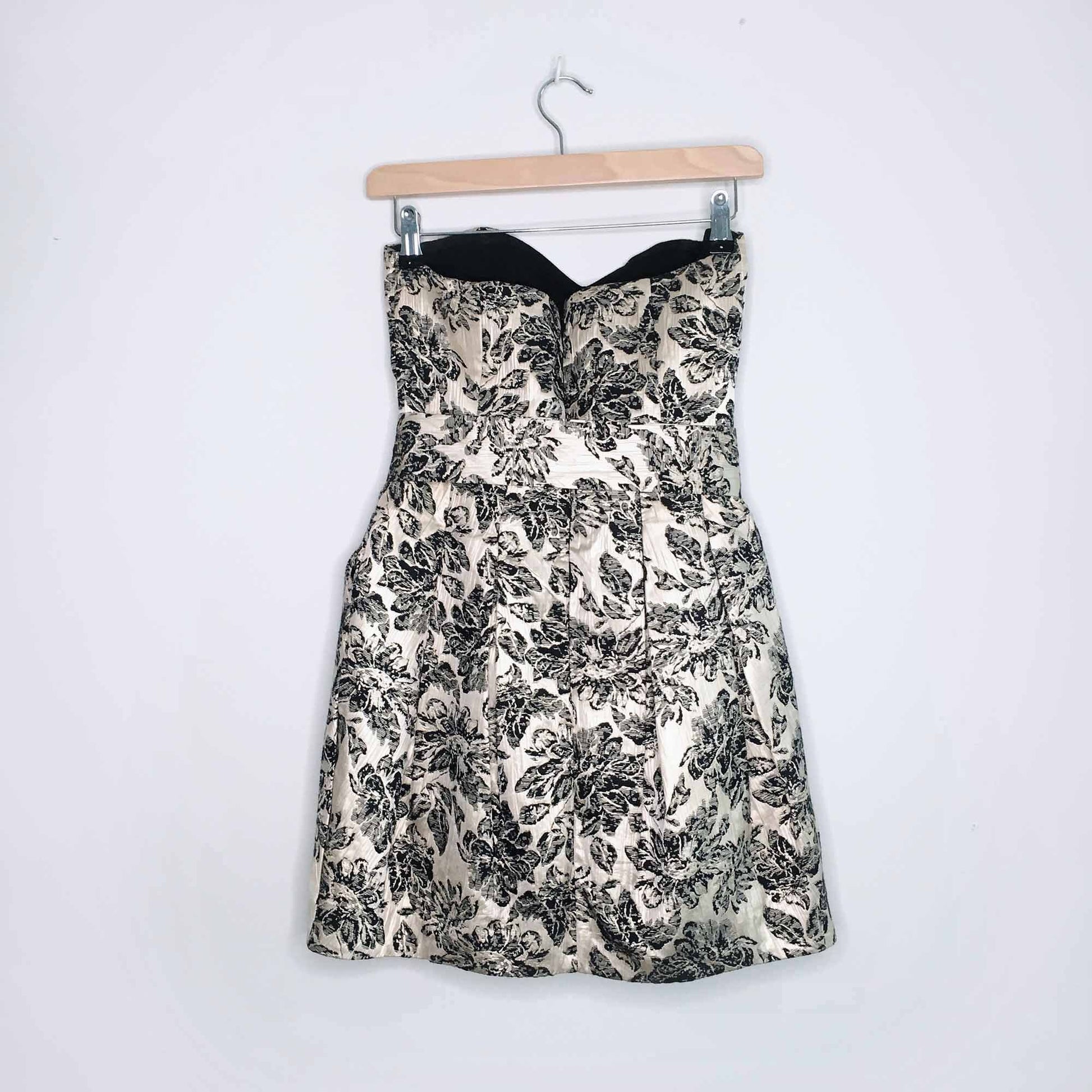 rubber ducky gold brocade strapless cocktail dress - size medium