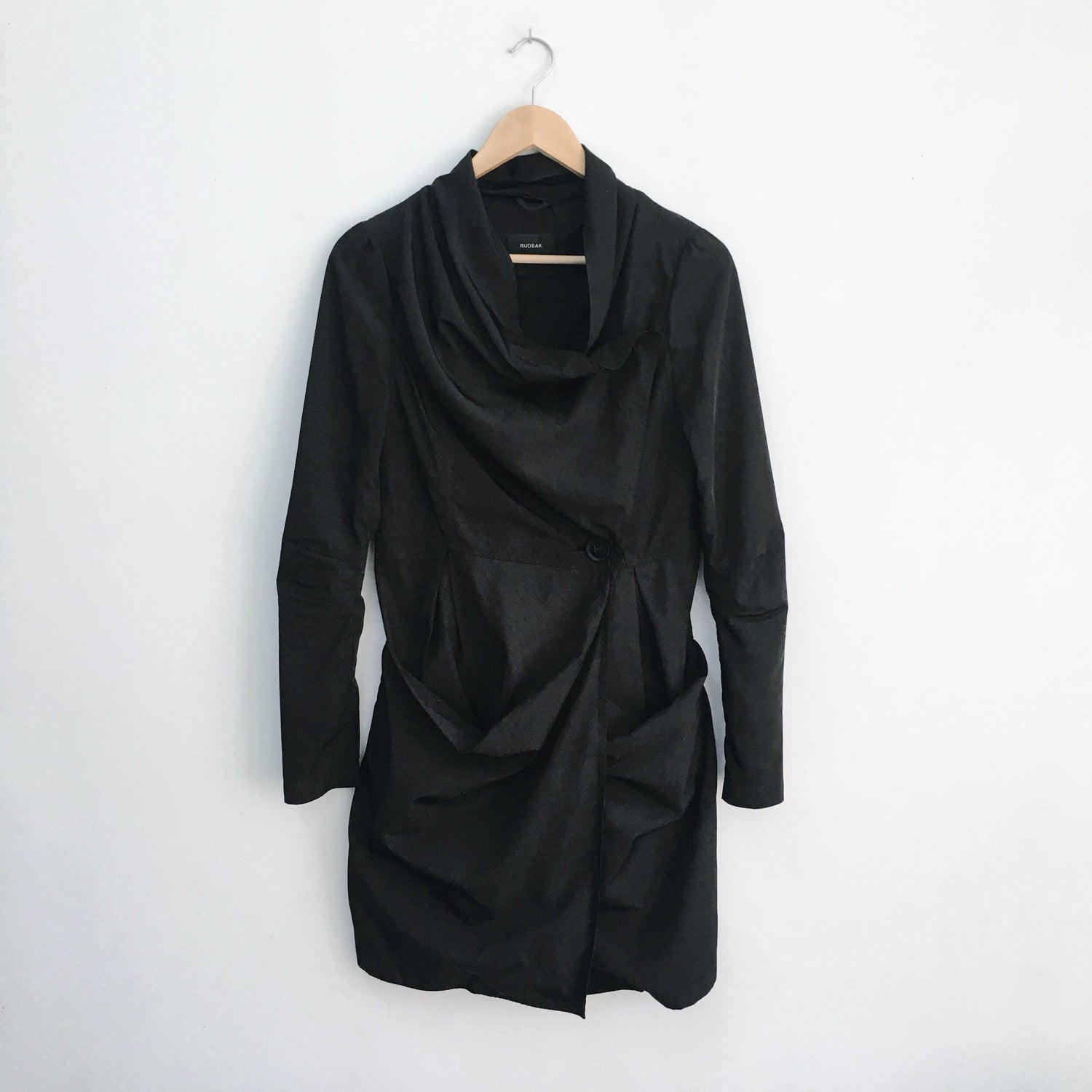 Item Description: A nice fall jacket from Rudsak, this one features a cross over drape collar, deep pockets, tie belt and front button closure. 100% polyester