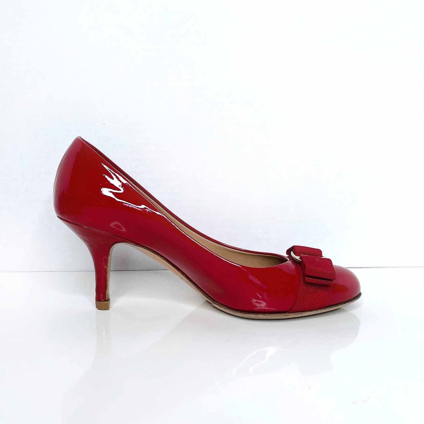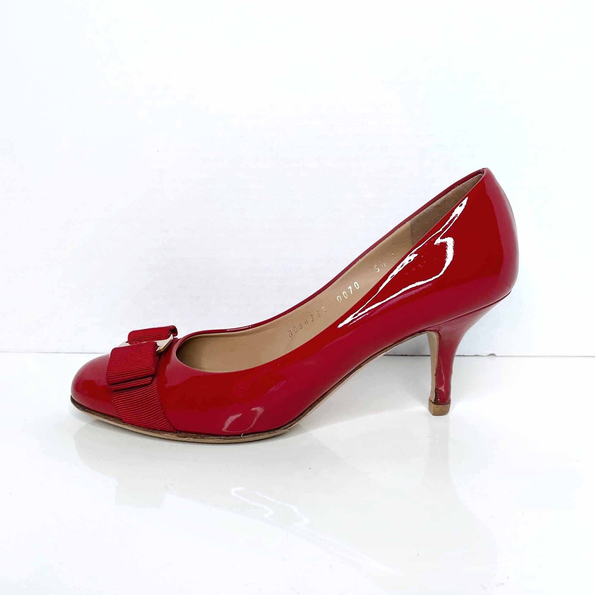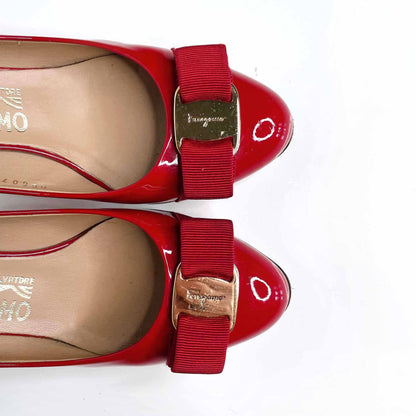 salvatore ferragamo red vara bow pump shoe - size 5.5