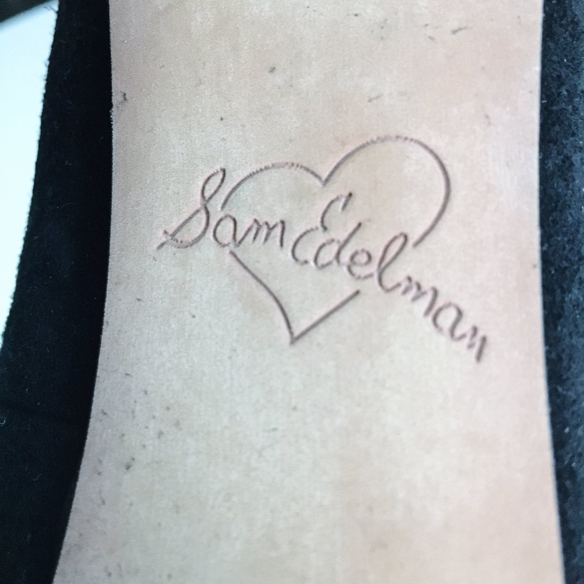 Item Description: Sam Edelman Ciara suede pump - 4" covered stiletto heel - Round toe - Adjustable ankle strap - Golden hardware - Smooth outsole.