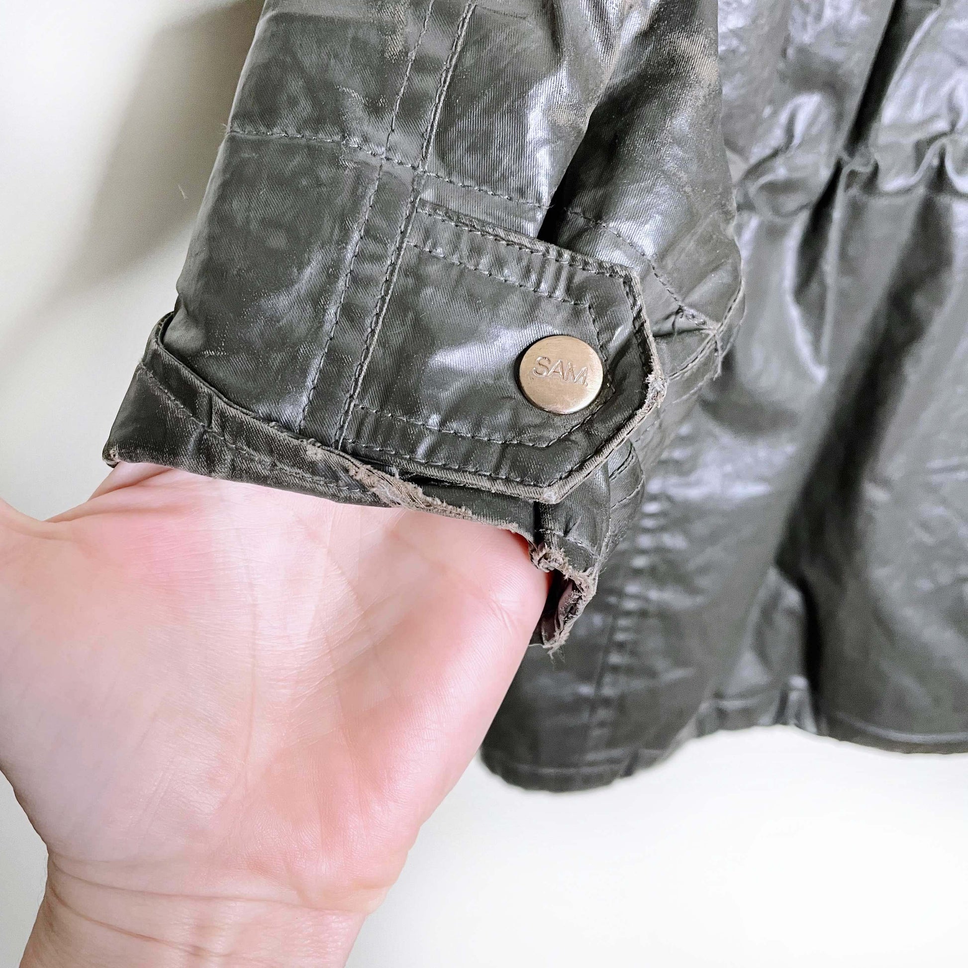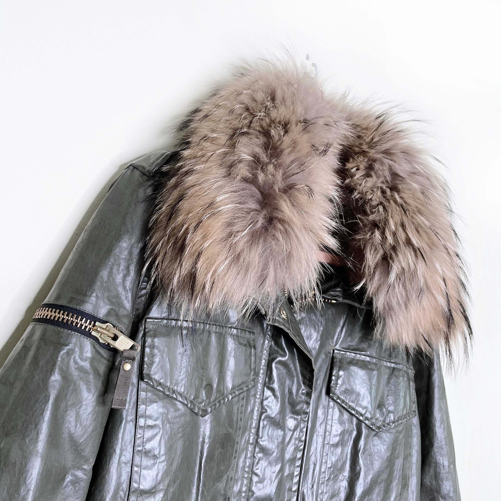SAM. hudson waxed cotton anorak parka with fur hood - size large