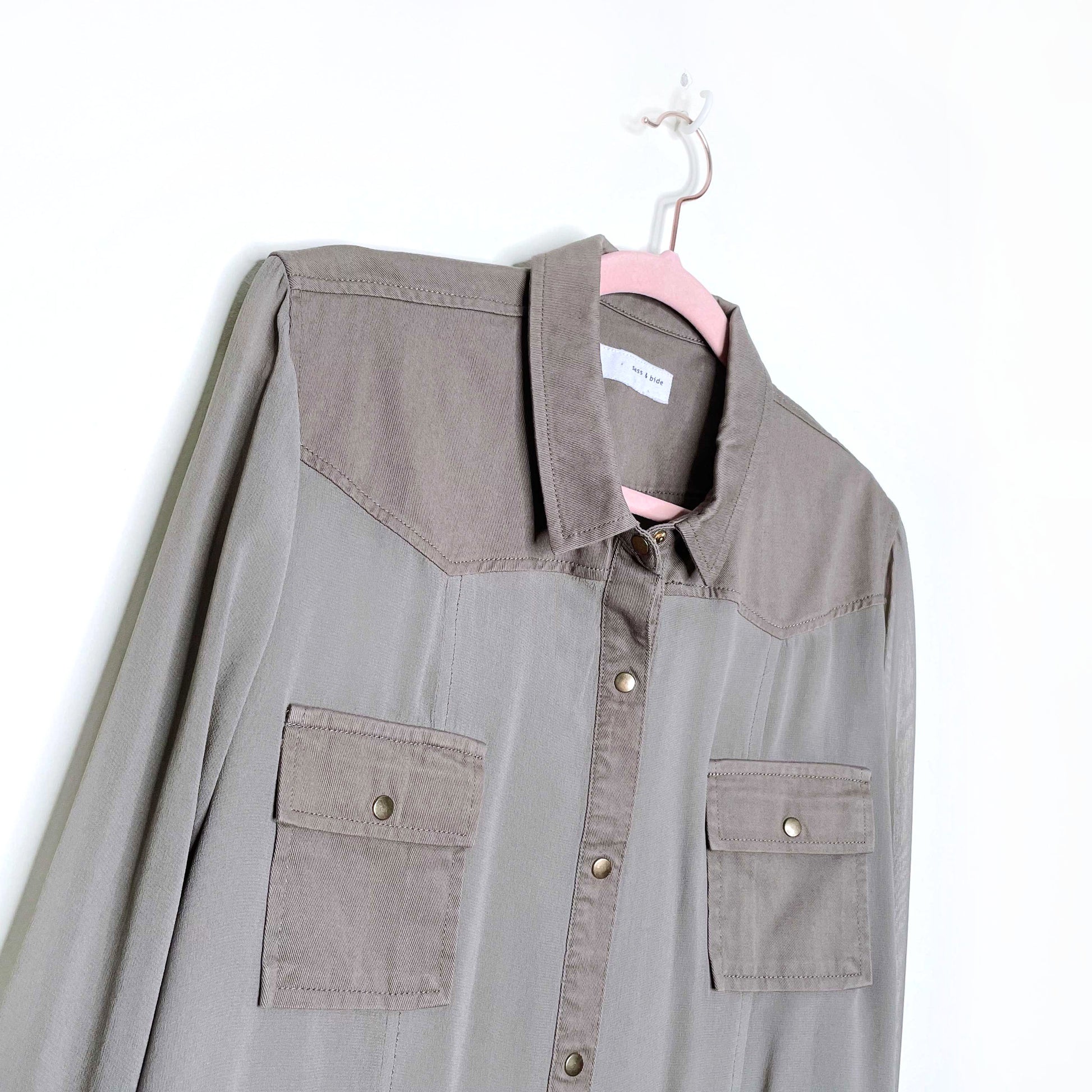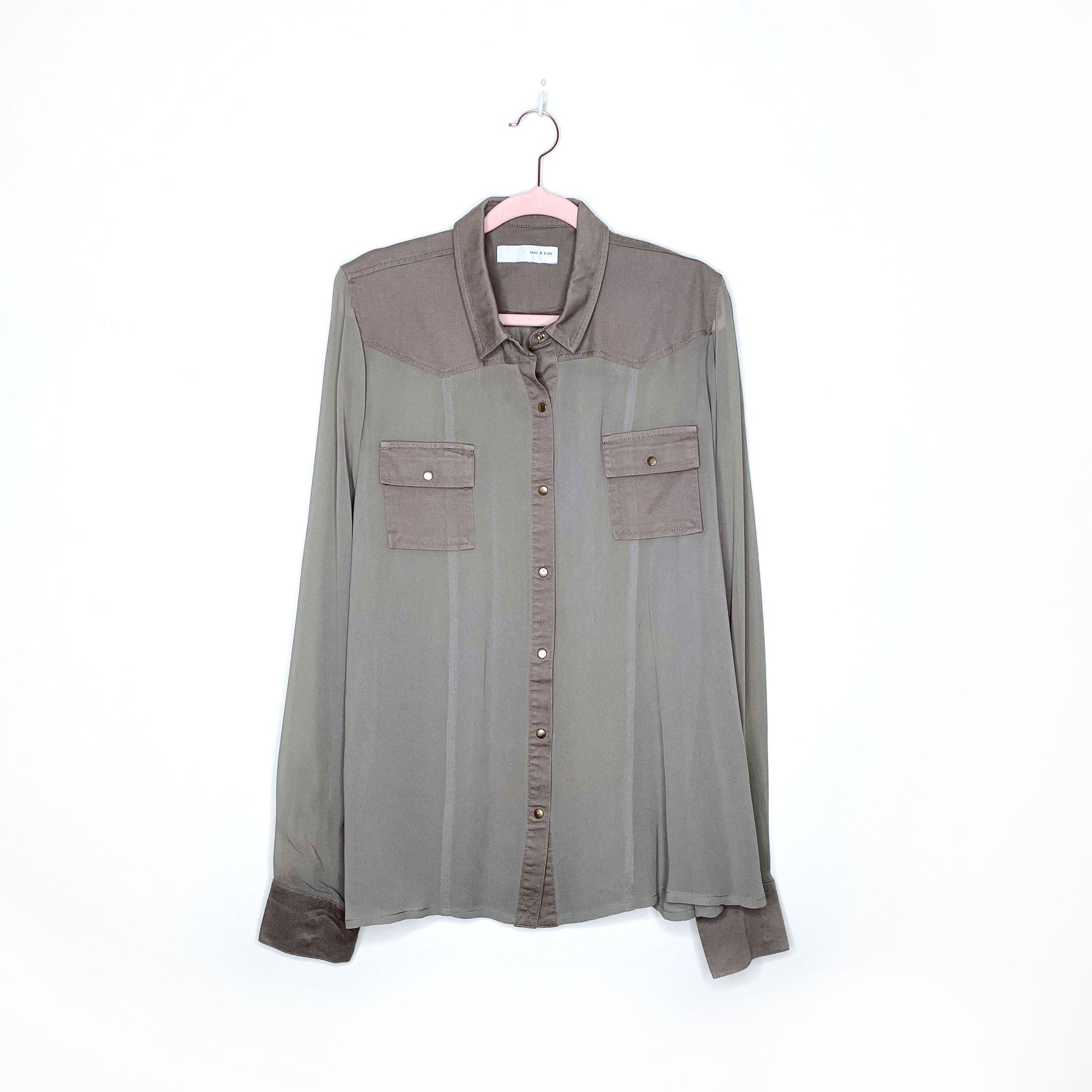 sass and bide silk chiffon twill combo utility button down shirt - size 44
