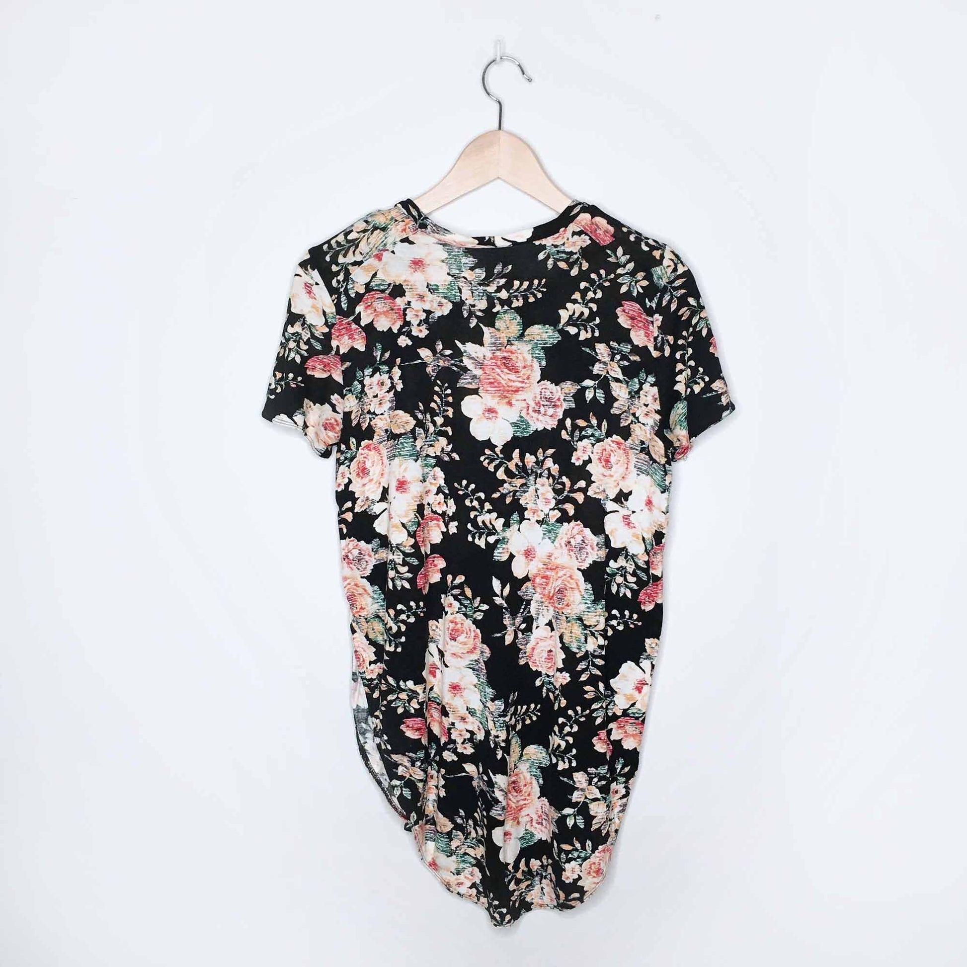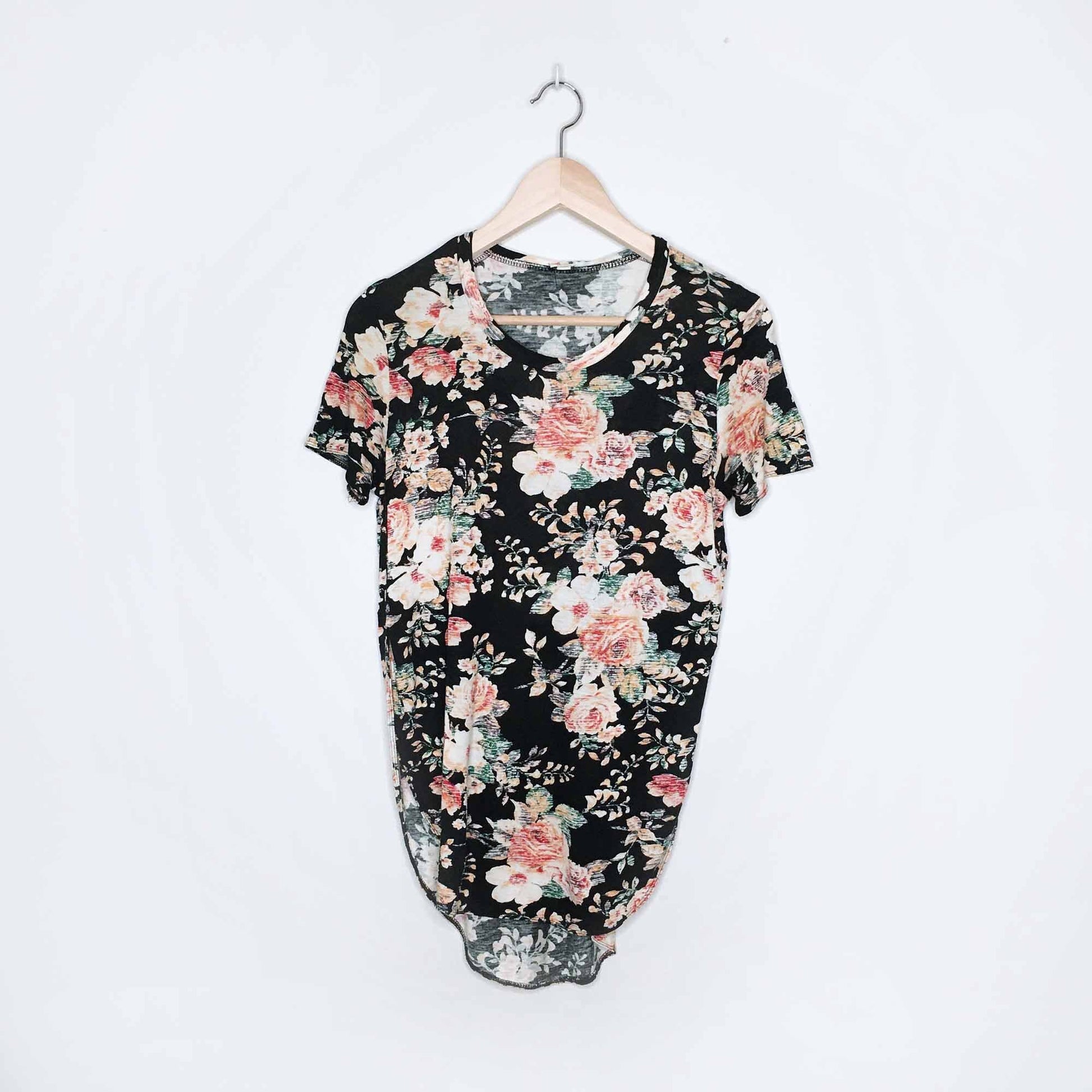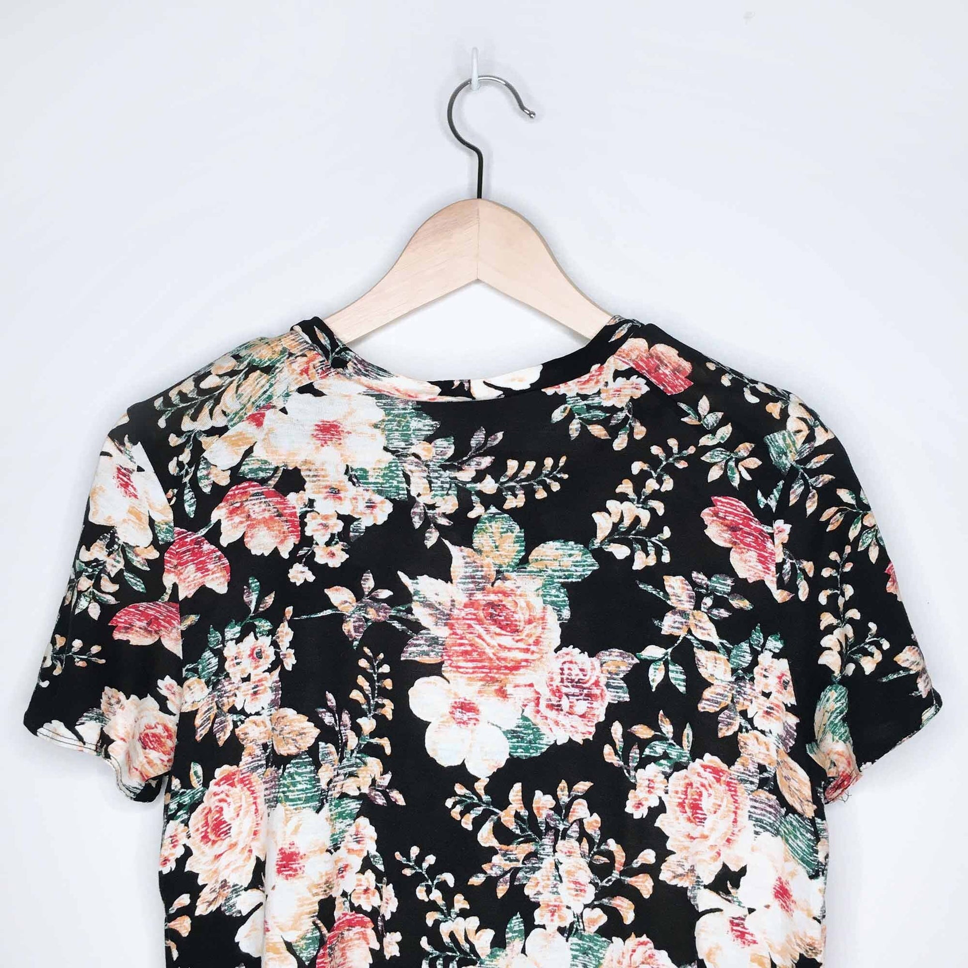 Size: rose tee: xxs, black tee: small (they both fit almost exactly the same, see measurements)
