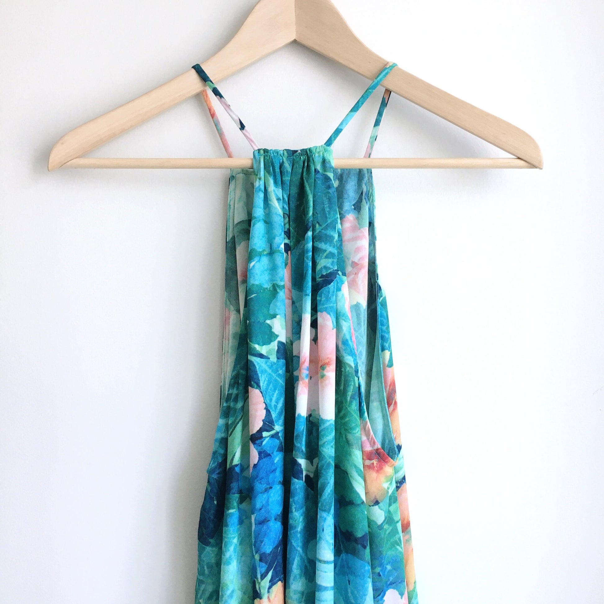 Item Description: From beach to dinner, this tropical floral Bronte maxi dress from Show me your Mumu is the perfect fit. High neckline, high side slits and mini dress lining. 100% polyester