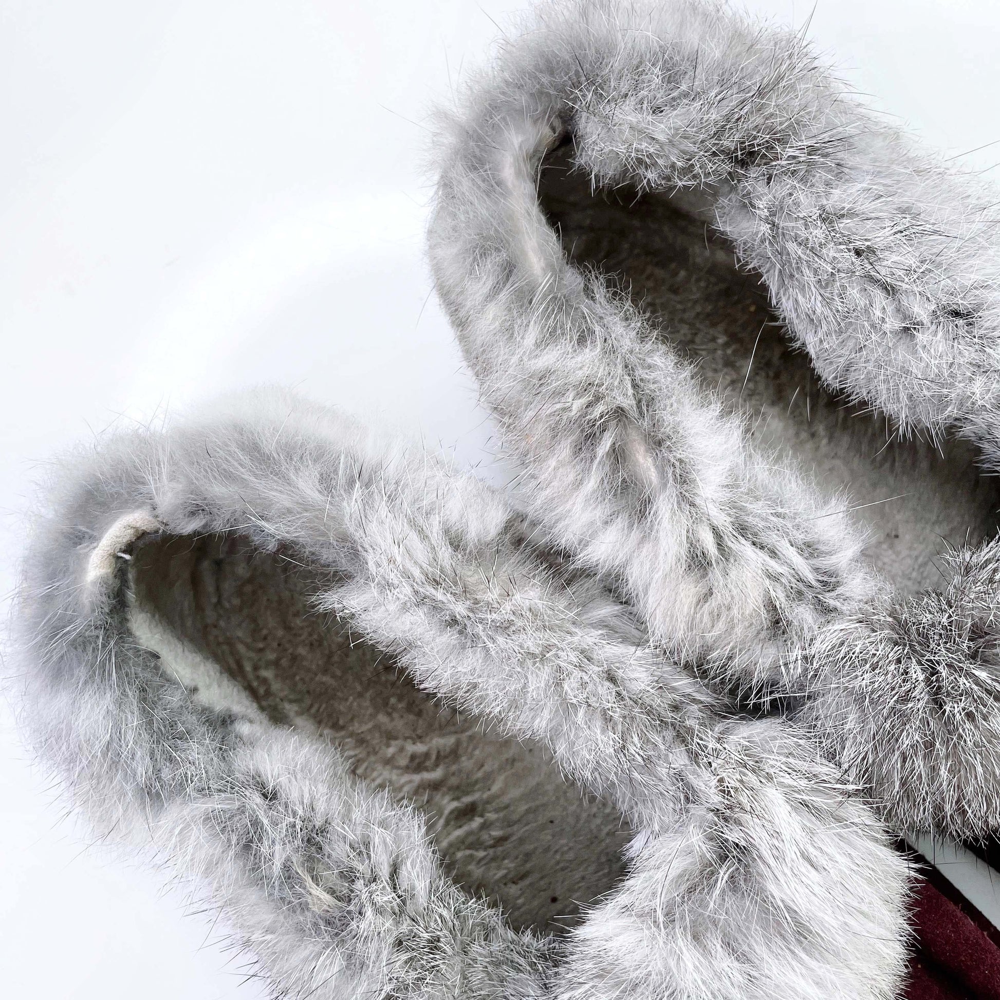Item Description: The 660 grey rabbit fur moccasin is made from genuine suede, making it a very durable slipper. It is collared with genuine rabbit fur and lined with fleece for added comfort and warmth. Soft suede upper, cushioned sole.