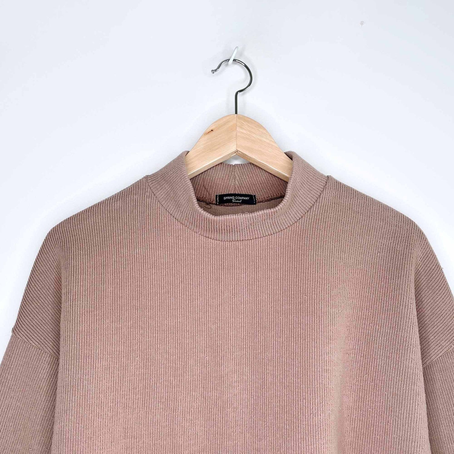 Item Description: This super cute cropped ribbed sweater from Spring Company Seoul features a tapered waist and mock neck top.