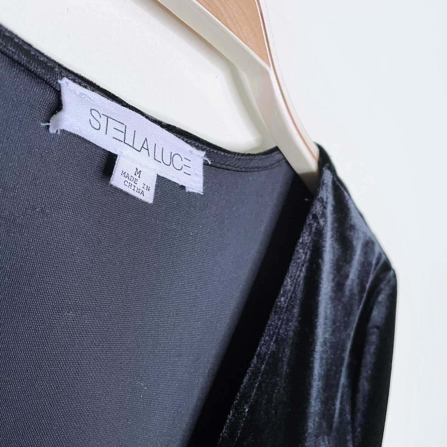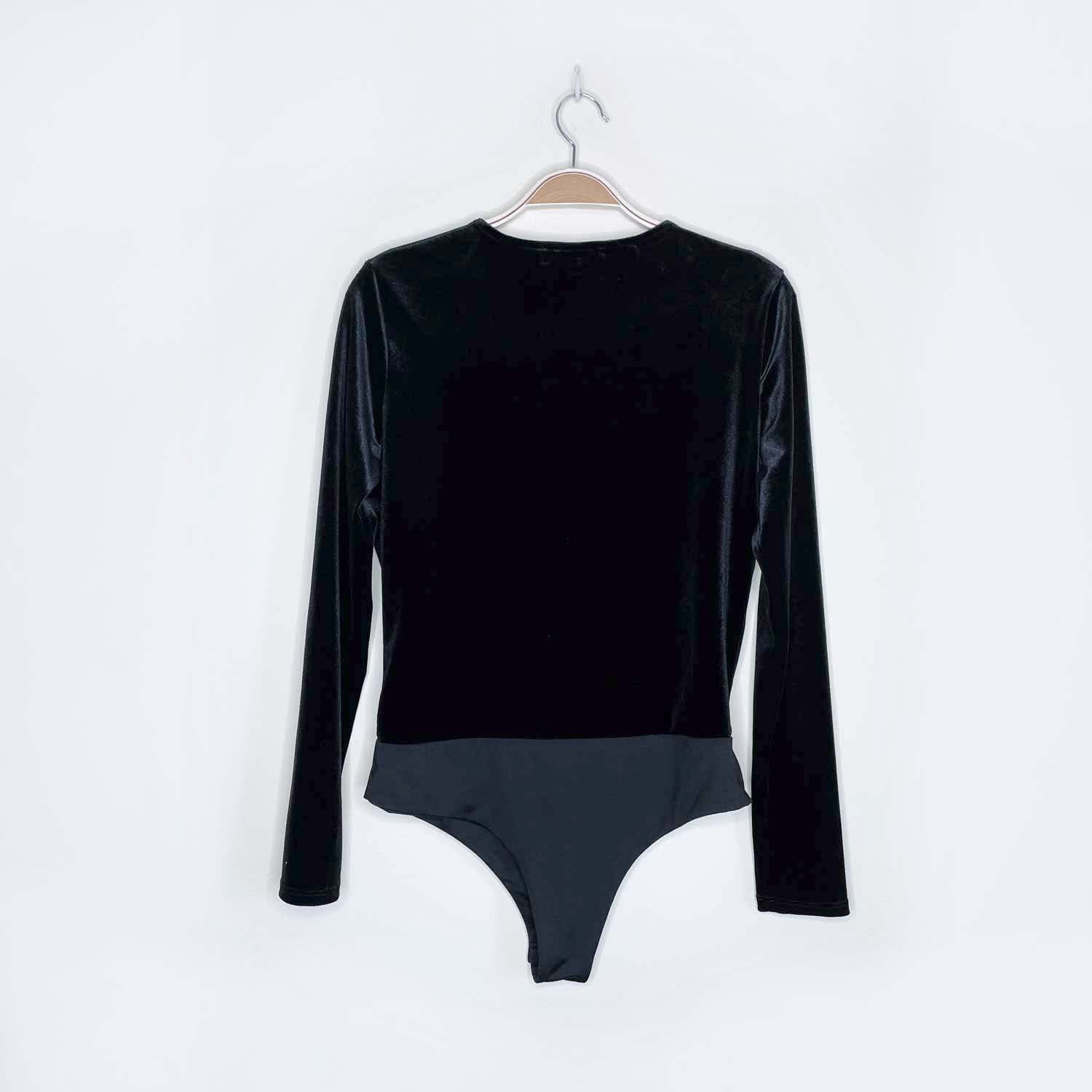 stella luce black velvet v-neck bodysuit - size medium