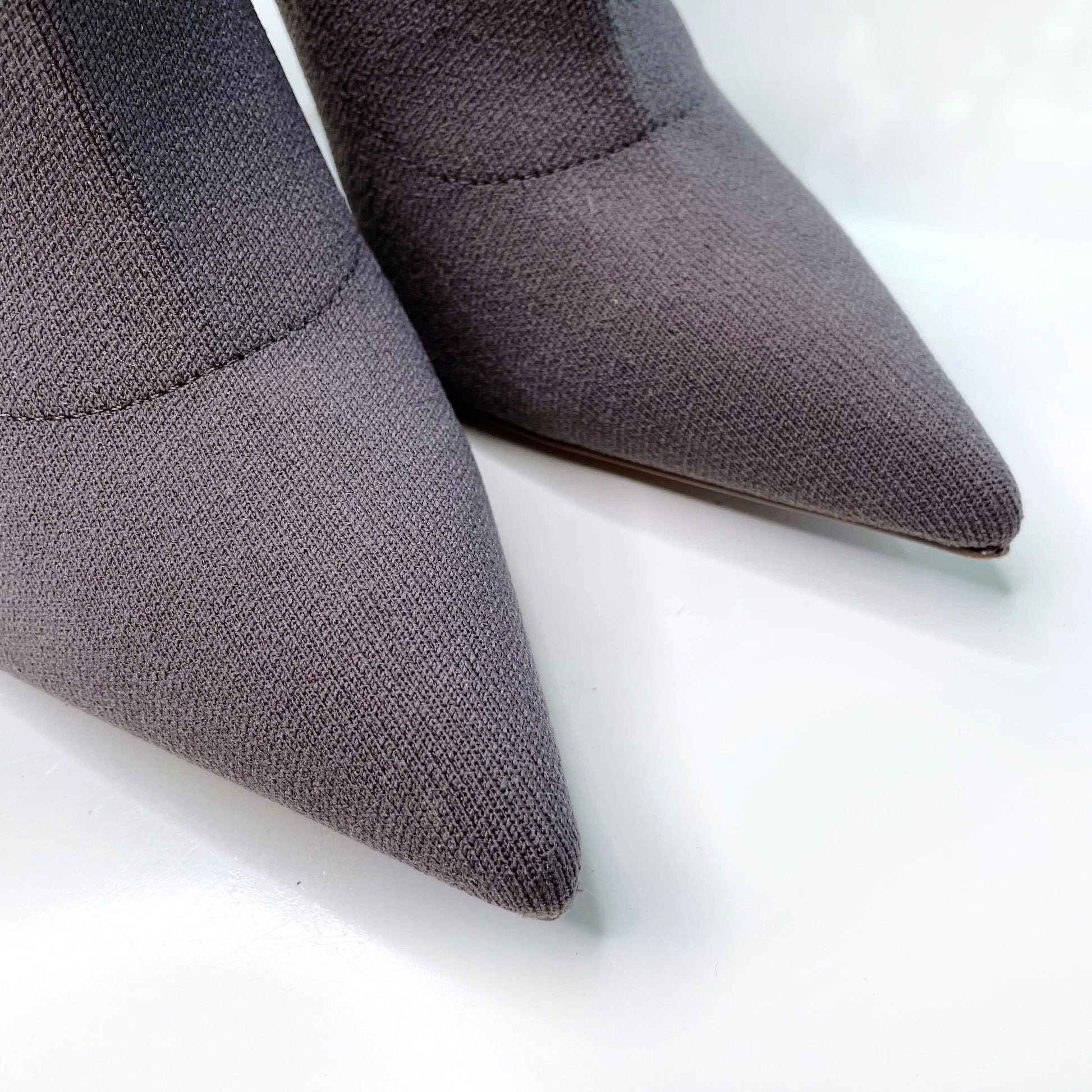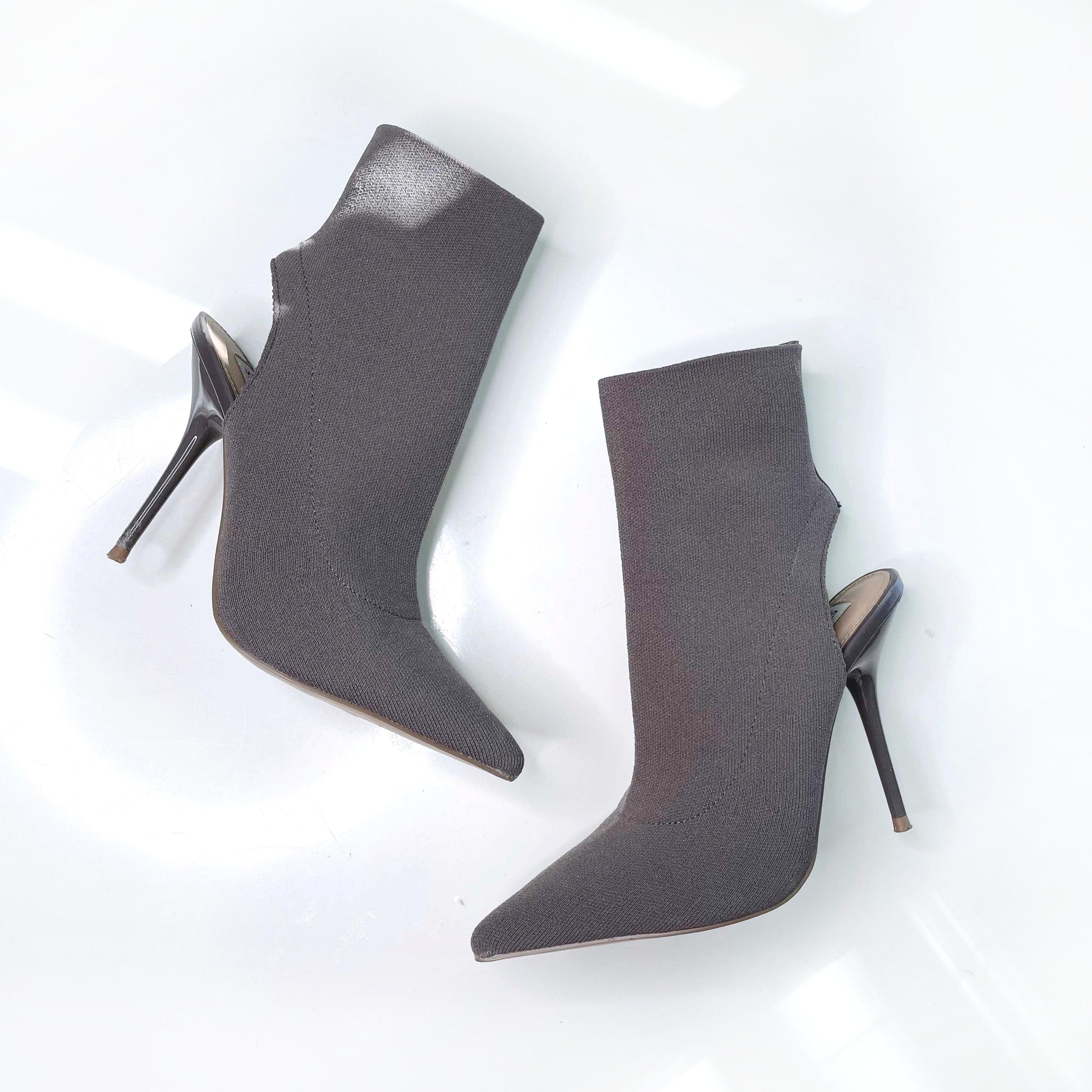 Item Description: Level up with these stretch grey knit sock booties from Steve Madden with cut-out heel. Pointed toe and stiletto heel adds a level of sophistication to any evening outfit.