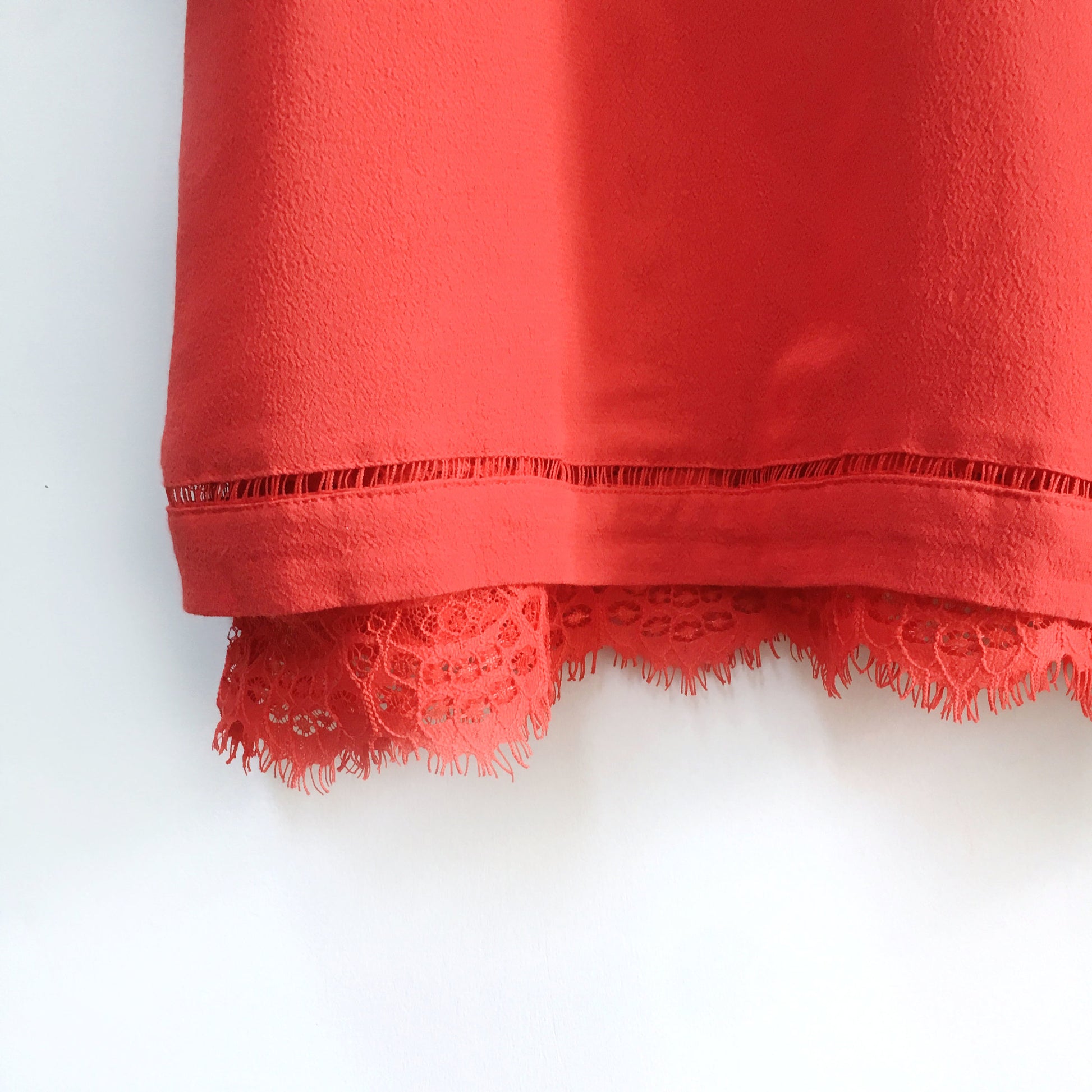Item Description: This s.t.u.n.n.i.n.g v-neck slip crepe dress from Suncoo Paris has thin straps for added allure and a lace trim layered hem and neckline. Size is 1 Tall, with a bit of extra length for my tall ladies.