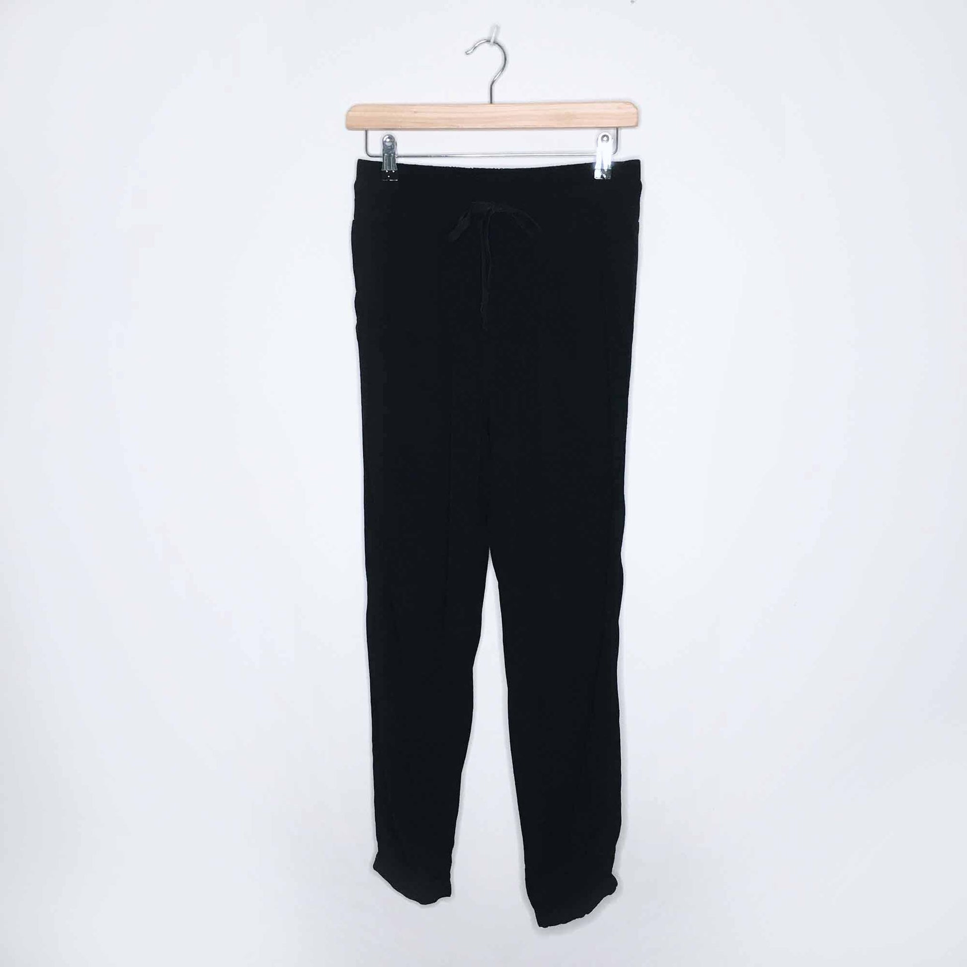 Item Description: These casual joggers from Aritzia’s Sunday Best are made with a drapey crepe fabric, drawstring waist, side pockets and elastic cuffs. 100% rayon