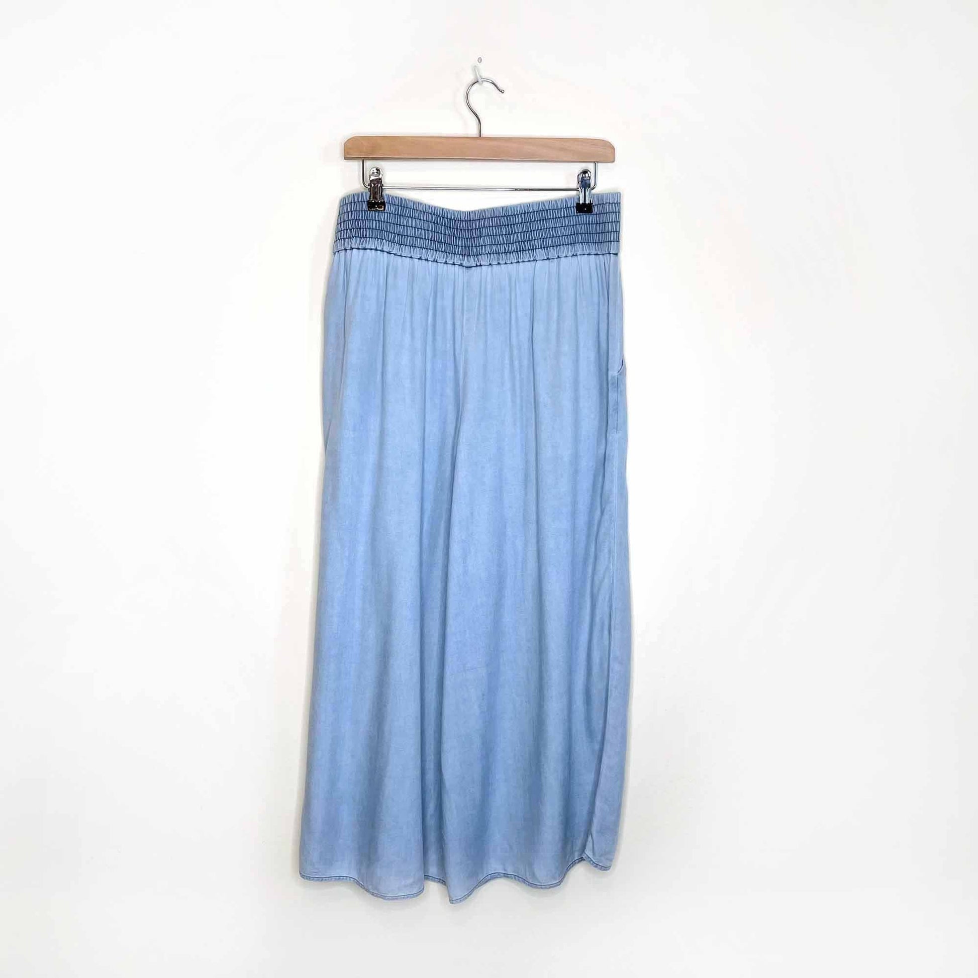 talula sullivan high waisted wide leg cropped chambray pants - size large