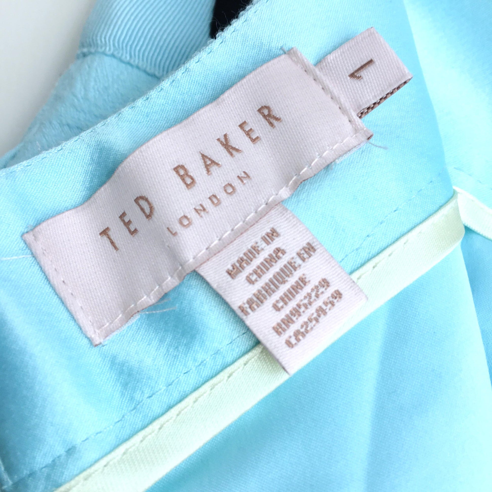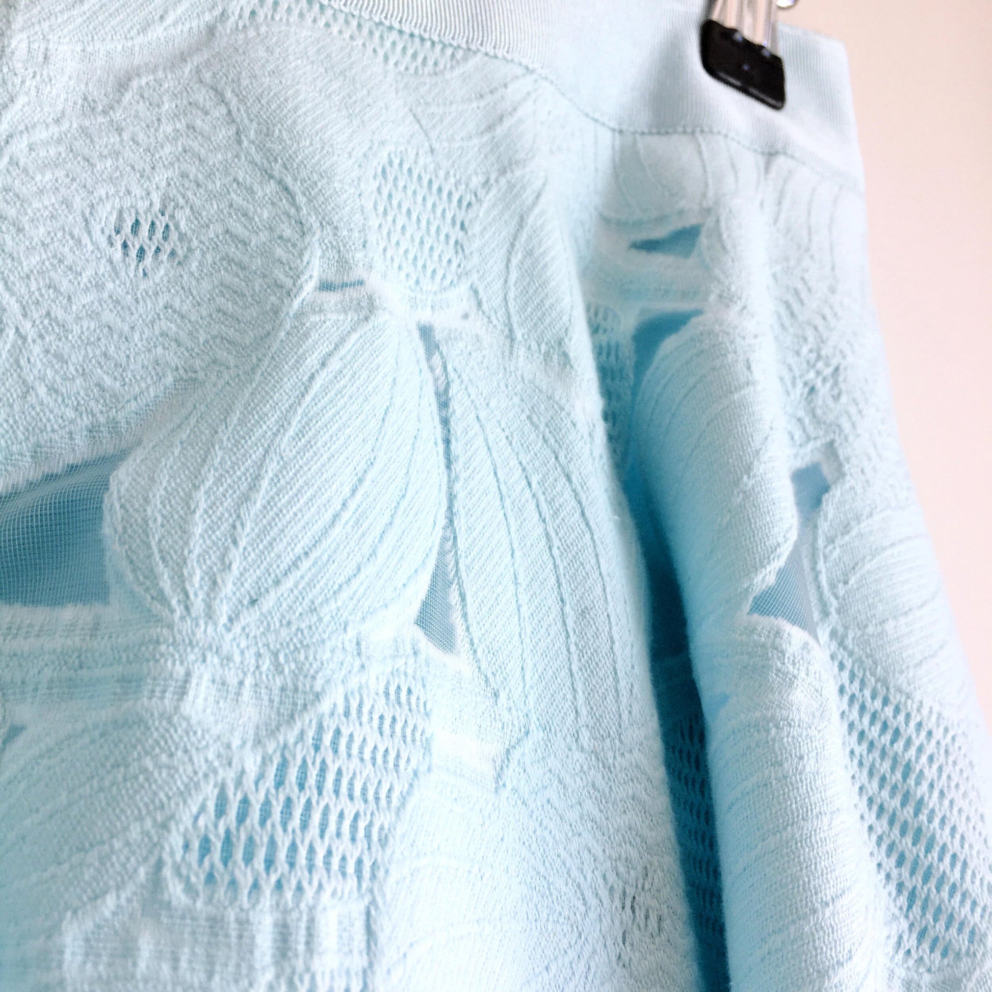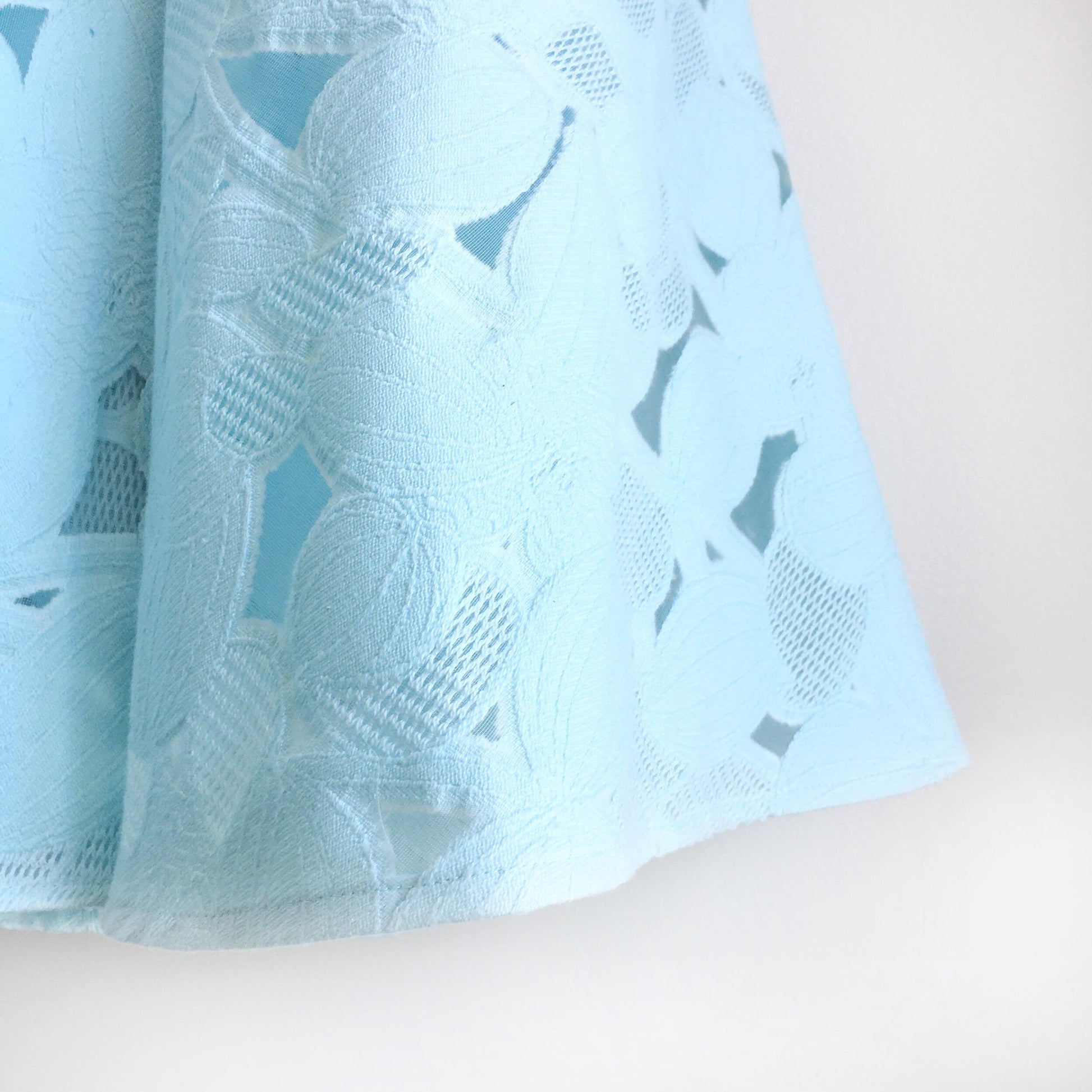 Item Description: The prettiest little skirt, this aqua floral lace midi skirt from Ted Baker features a ribbon waist, gold zipper closure and side pockets. Lined. Shell: 81% cotton 19% polyamide Lining: 97% polyester 3% elastane