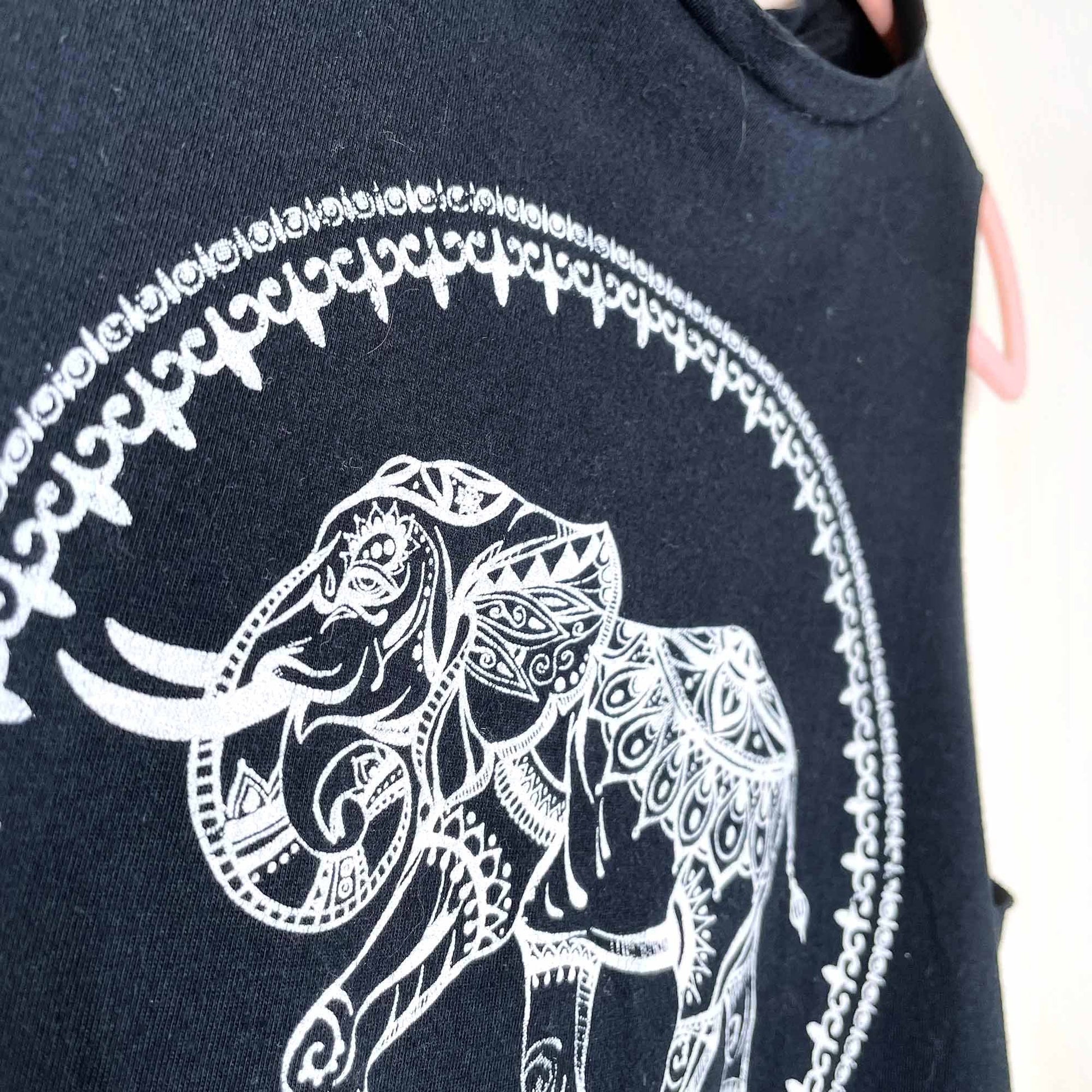 thailand elephant sleeveless crop top with fringe hem - size xs/sm