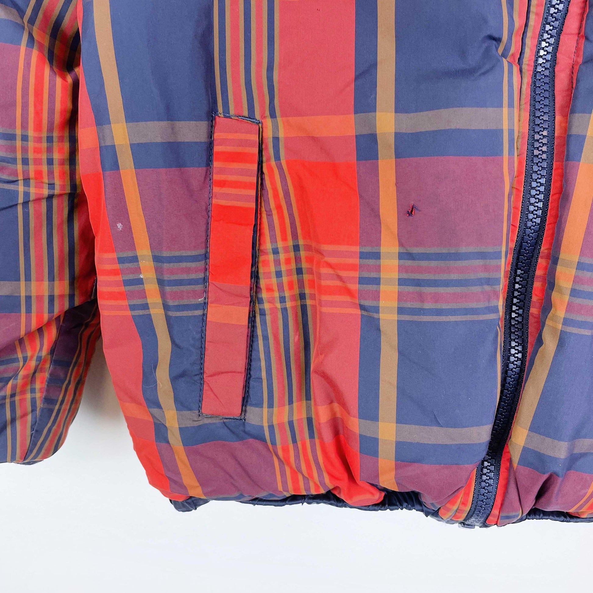 Condition: GOOD 9/10 - small hole near pocket on plaid side, prior repair to chest on navy side