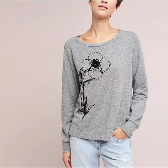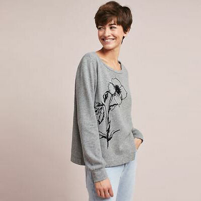 Item Description: This crewneck sweatshirt from t.la at Anthropologie features a flocked flower graphic front and overall cozy vibes. There’s something to be said for a simple grey heather crewneck. 67% cotton 25% polyester 8% rayon