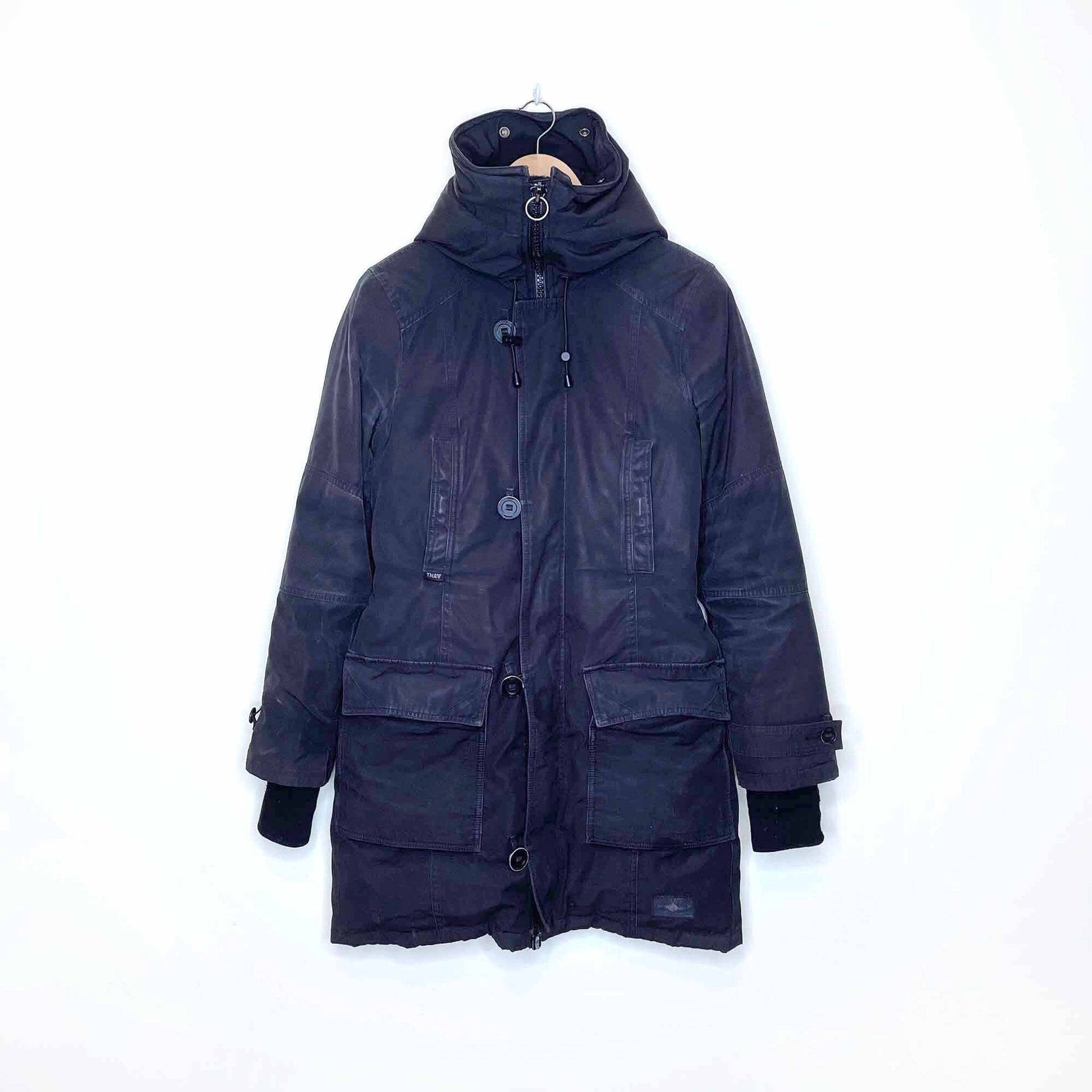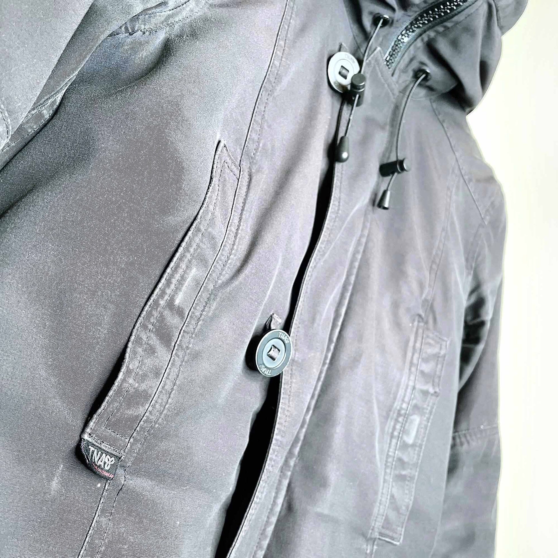 Condition: FAIR 8/10 - overall fading, hood fur and original zipper pulls are missing - zipper still works great, and a ring was added for easy pulling