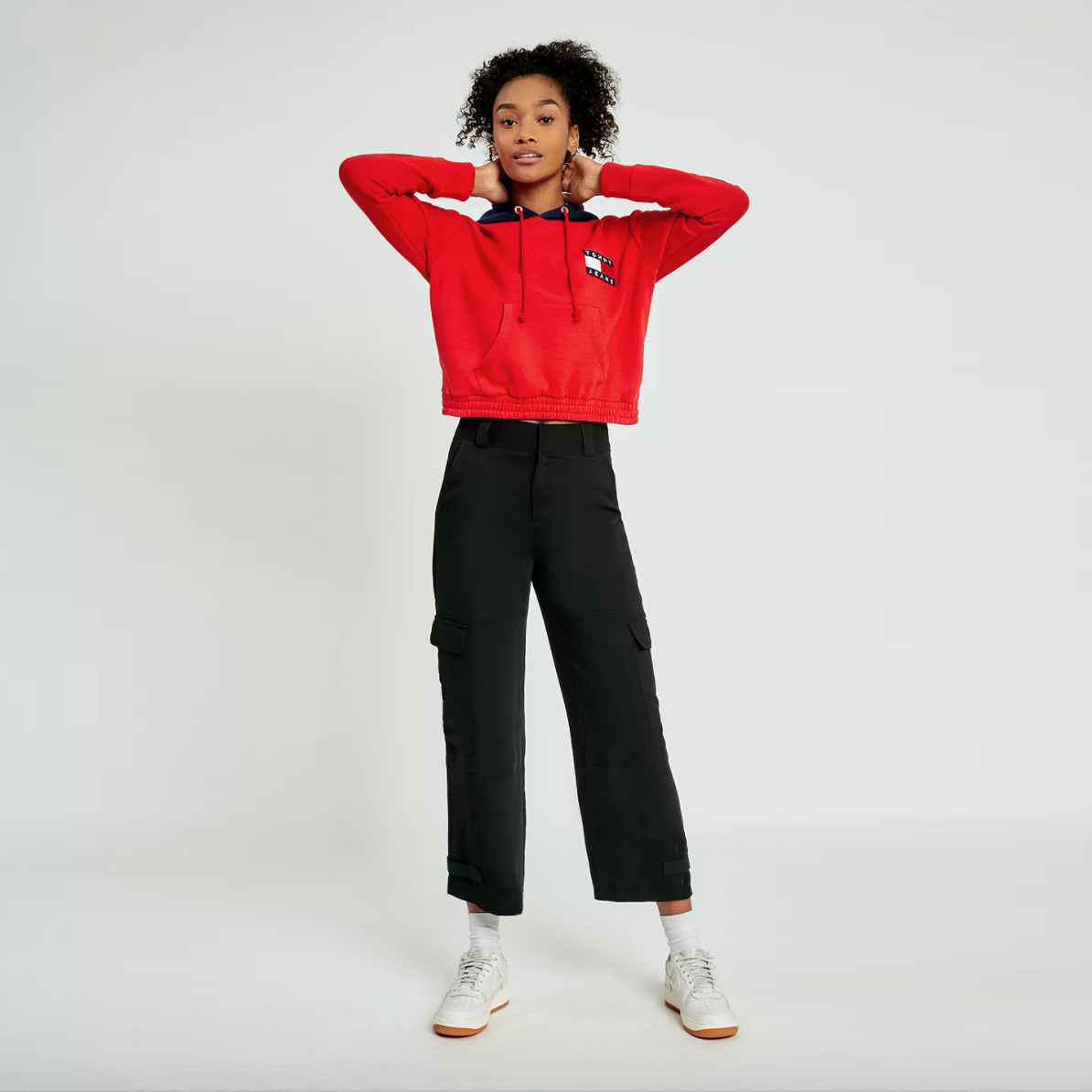 tommy jeans 90's capsule contrast cropped hoodie - size xs