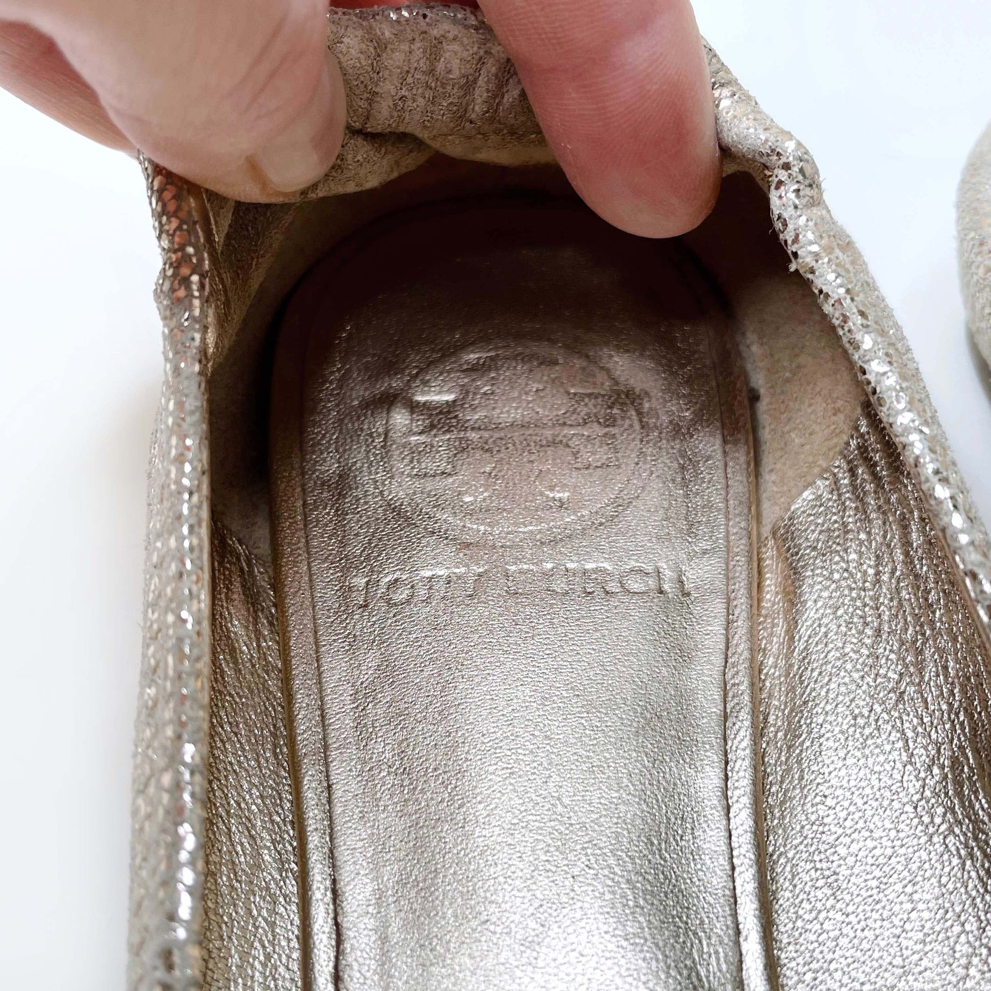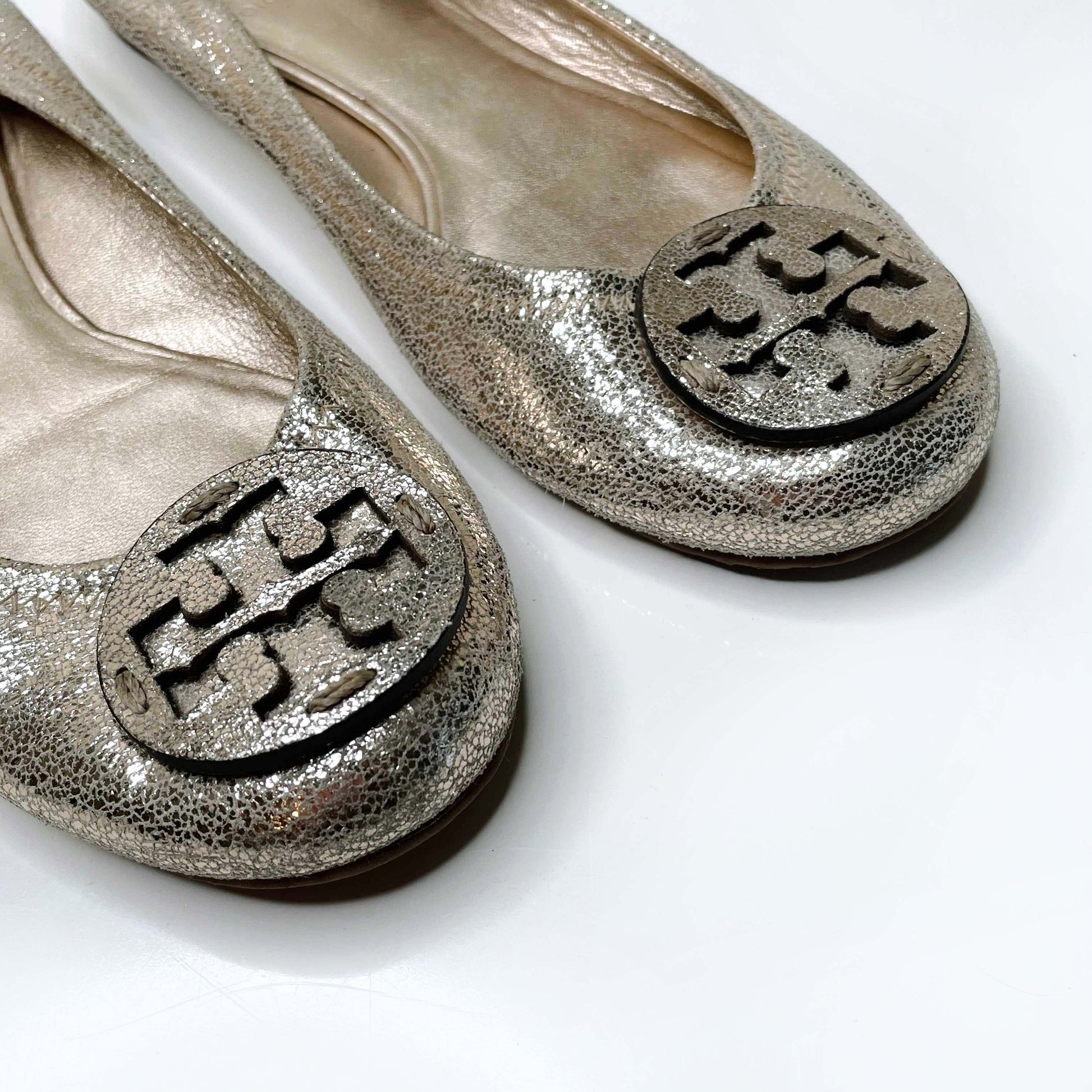 Item Description: Striking in a metallic sheen, these leather ballet flats exude refinement. Leather upper, round toe, slip-on style, leather lining, rubber sole.