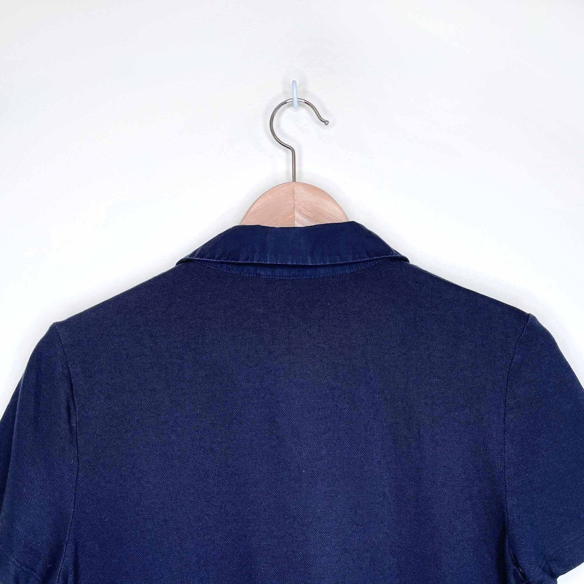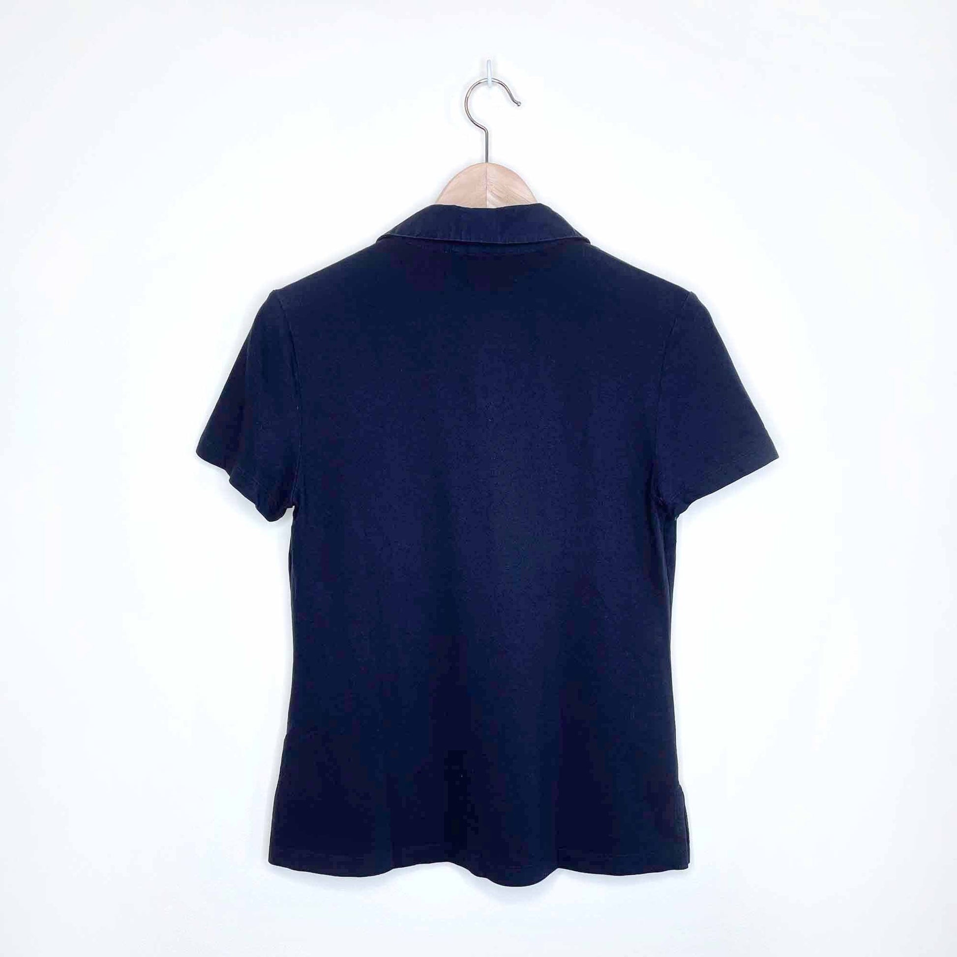 Item Description: Made from fine cotton terry cloth with stamped buttons and a feature Tory Burch button at the neck, this classic Polo with cap sleeves and a slim fit is a fun update to a prep-inspired piece. Wear it to work with lightweight suiting or casually over a bikini on seaside retreats. 55% modal 42% cotton 3% spandex