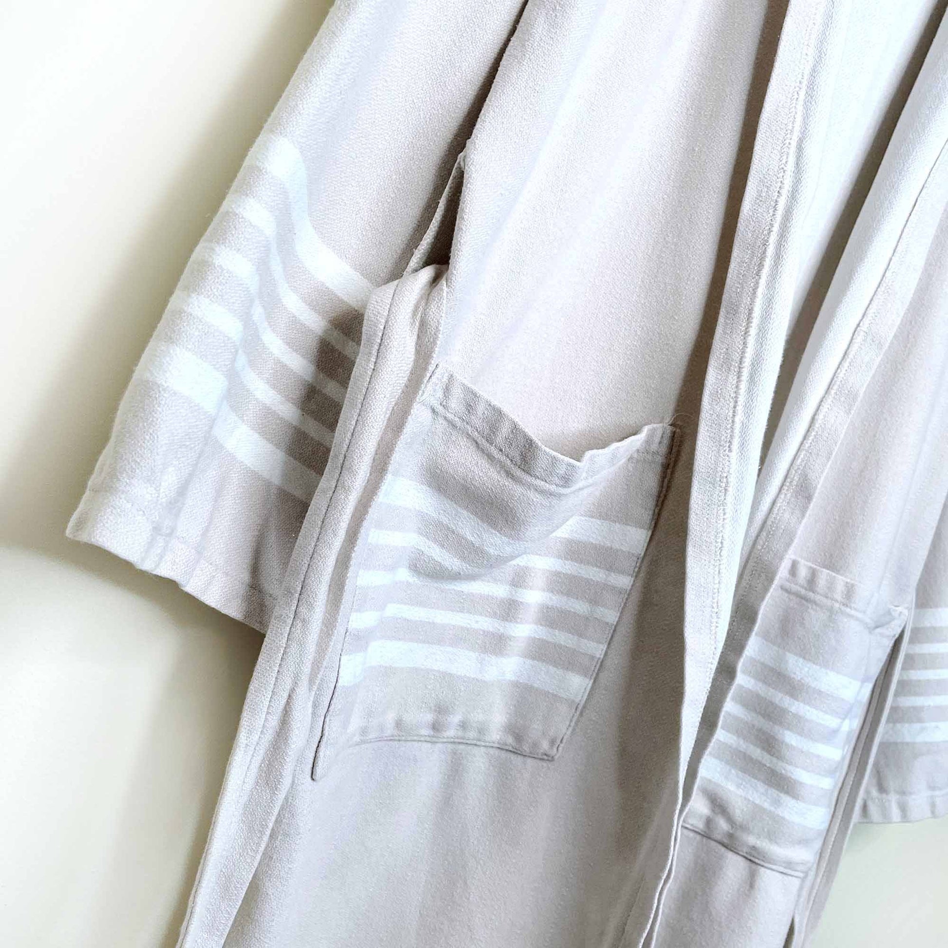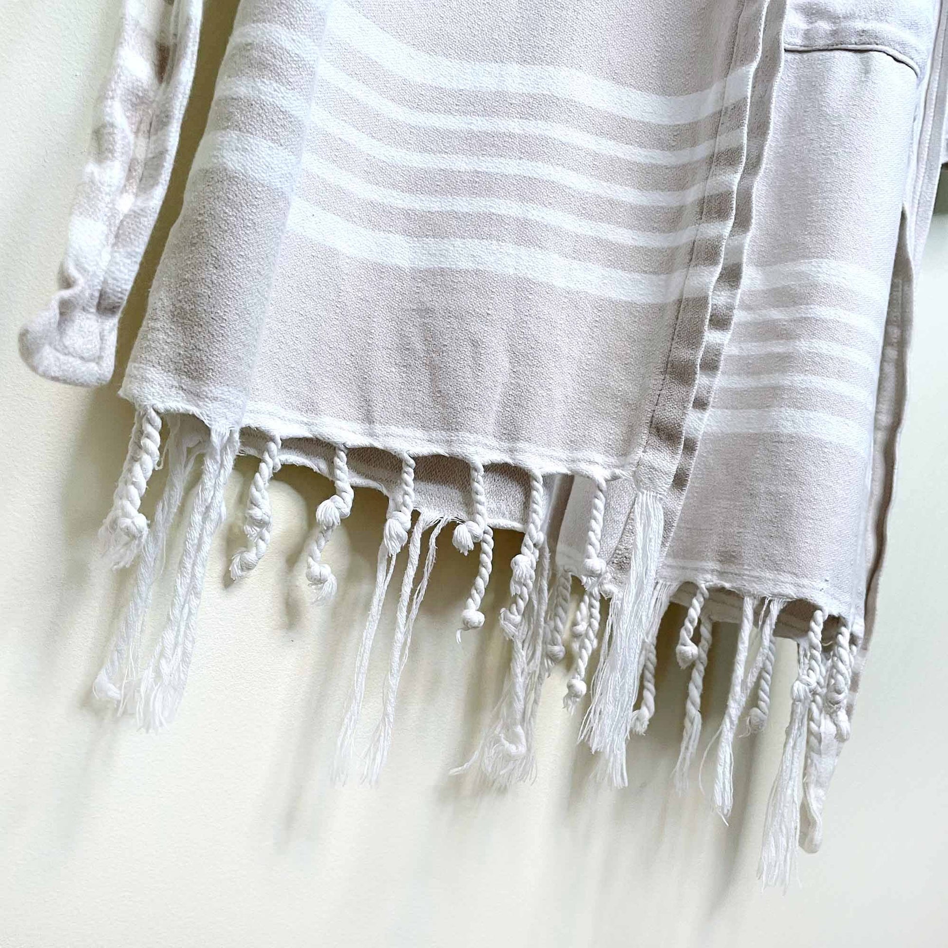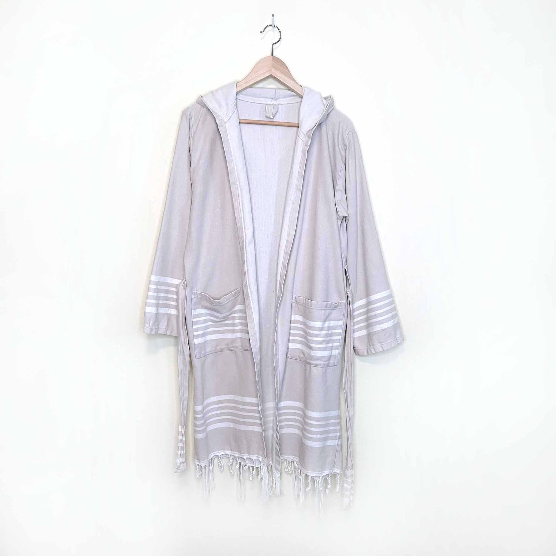 turkish towel spa bath robe with stripe and fringe hem - sm/med
