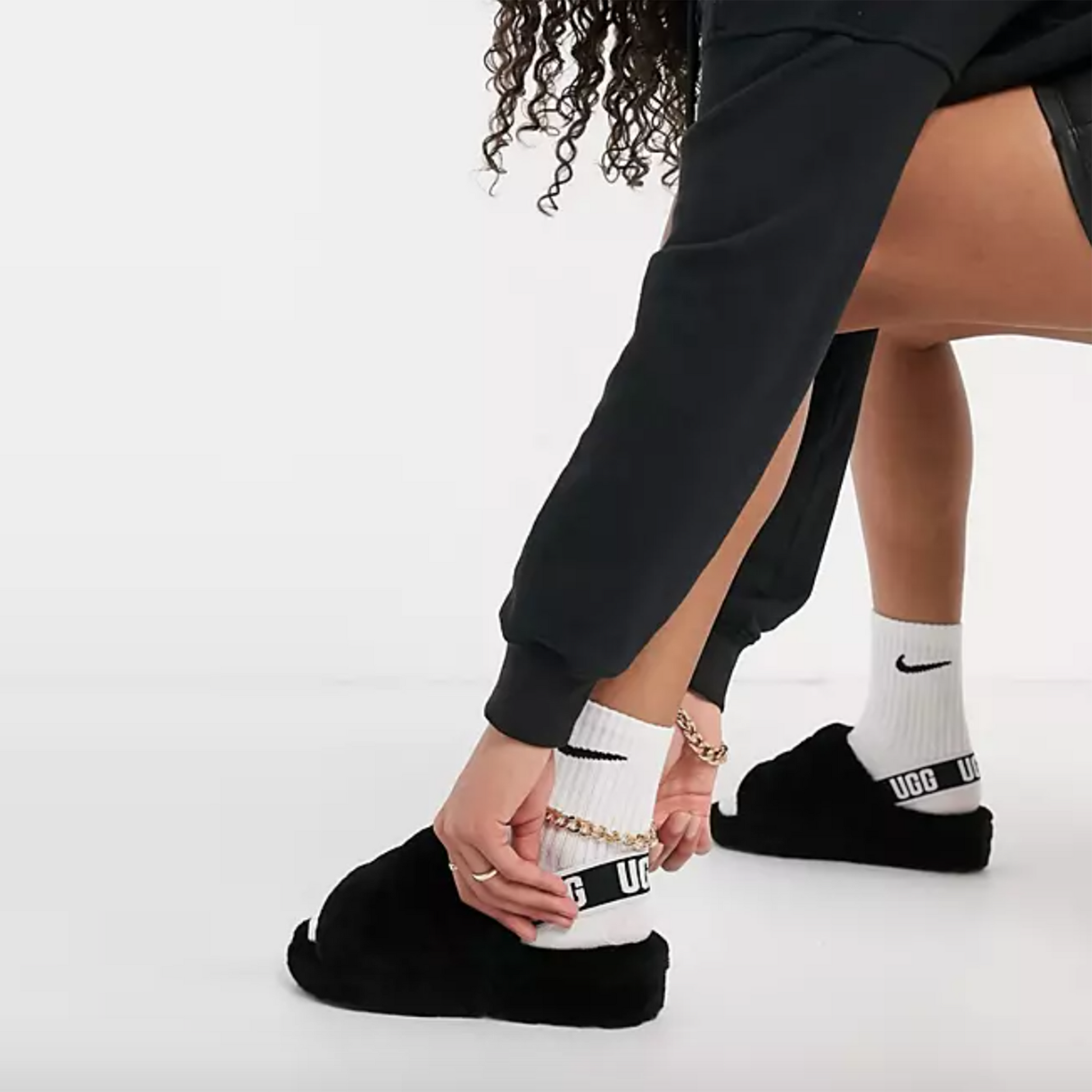 ugg black fluff yeah sheepskin slide slippers - size 8.5