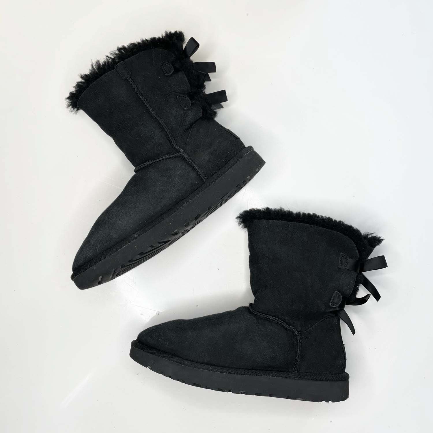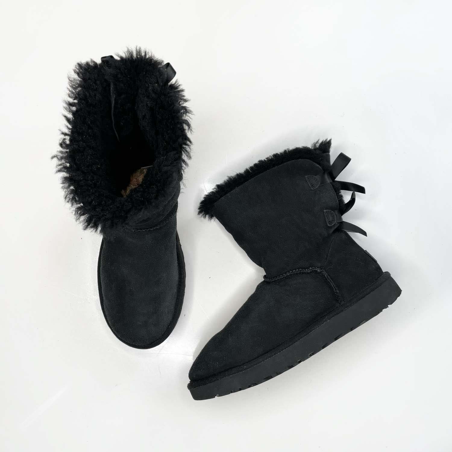 ugg classic bailey II double bow black sheepskin boot - size 9