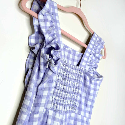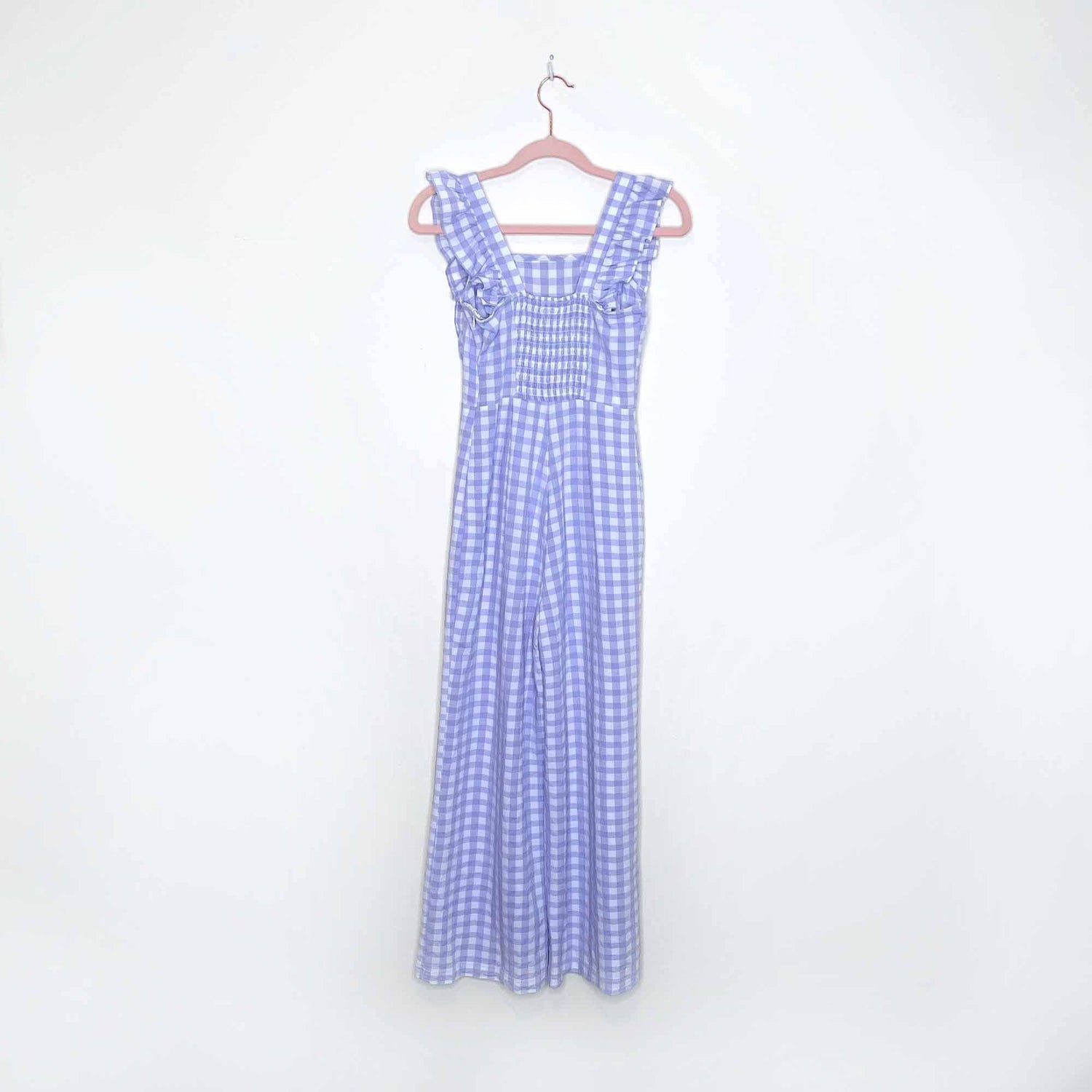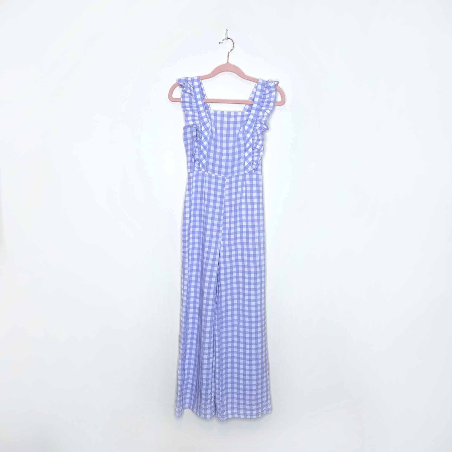 uo urban outfitters emerson purple gingham ruffled jumpsuit - size xs