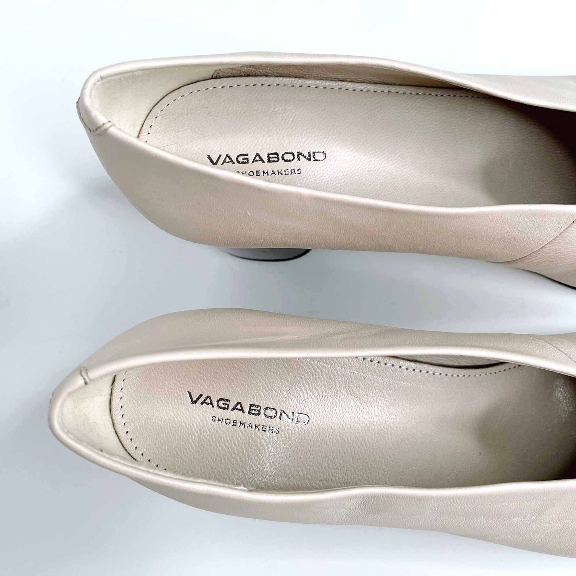 Item Description: Blending a modern tude with vintage-inspired elements in this must-have heel from Vagabond Shoemakers. Pointy-toe heel featuring a v-cut vamp and made in a soft suede or crisp leather. Set on a curved, wood block heel and rubber sole. 100% leather upper