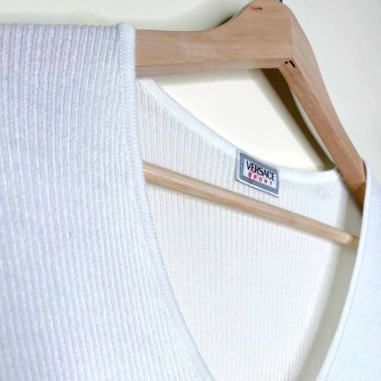versace sport ribbed knit v-neck long sleeve top - size 40