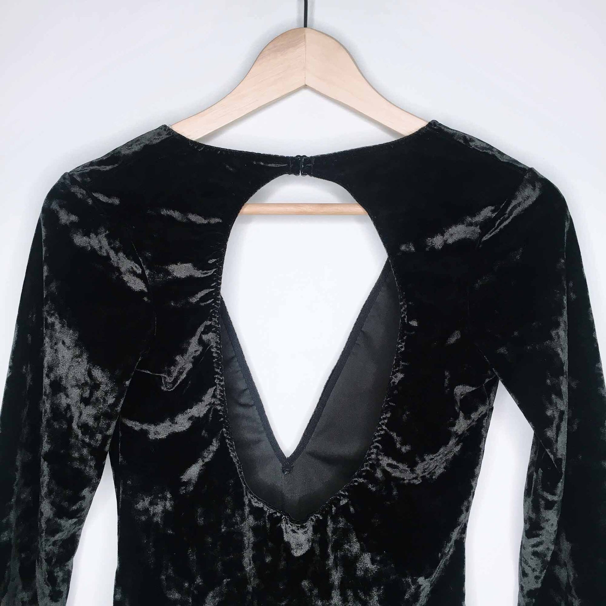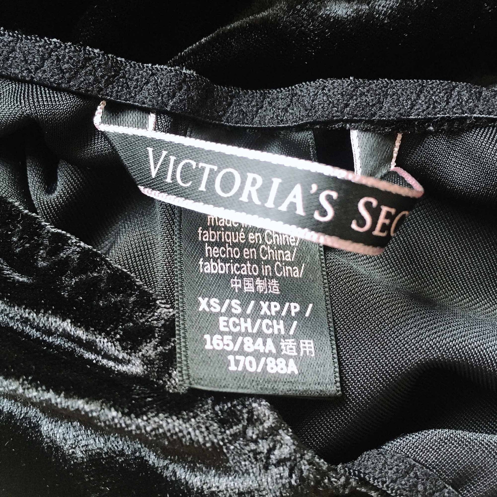 Item Description: This ultra sexy bodysuit from Victoria’s Secret features a plunging v neckline, open back and long sleeves with a velvet touch. 90% polyester 10% elastane